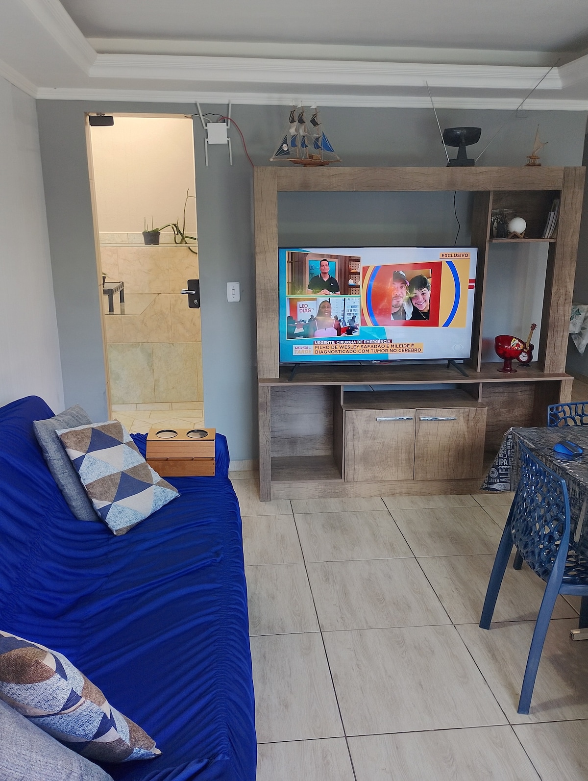 Full House, świetna lokalizacja, 20 min od lotniska i 3 min od autostrady. 02 sypialnie, 1 sypialnia, salon, kuchnia, pralnia, 02 łazienki, garaż, taras + Wi-Fi - Apartament: łazienka i szafa, duże łóżko, klimatyzacja 12BTUS. - Sypialnia dwuosobowa: podwójne łóżko i wentylator. – Salon: 43-calowy telewizor, sofy. - Pełna kuchnia! - Grill obrotowy. - Łazienka socjalna. - Pranie: Máq de Lavar - Vaga p/ 01 vaga (discovery). - zindywidualizowany taras.