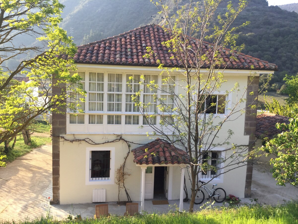 Villa con amplia zona ajardinada a cinco minutos andando al centro de Potes. Desayuno opcional.