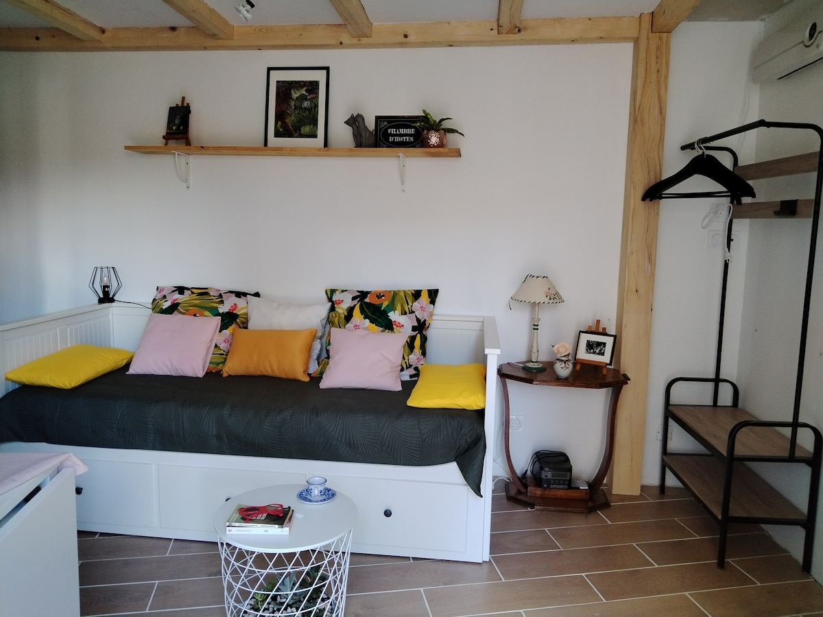 Appartement de 35m2 en rdc avec accès sur un grand jardin d’une maison rénovée. Petite terrasse aménagée à votre disposition. Accès indépendant par le garage. Idéal pour 2 personnes. Possibilité de rajouter un lit parapluie (sur demande). Arrêt de bus devant la maison.