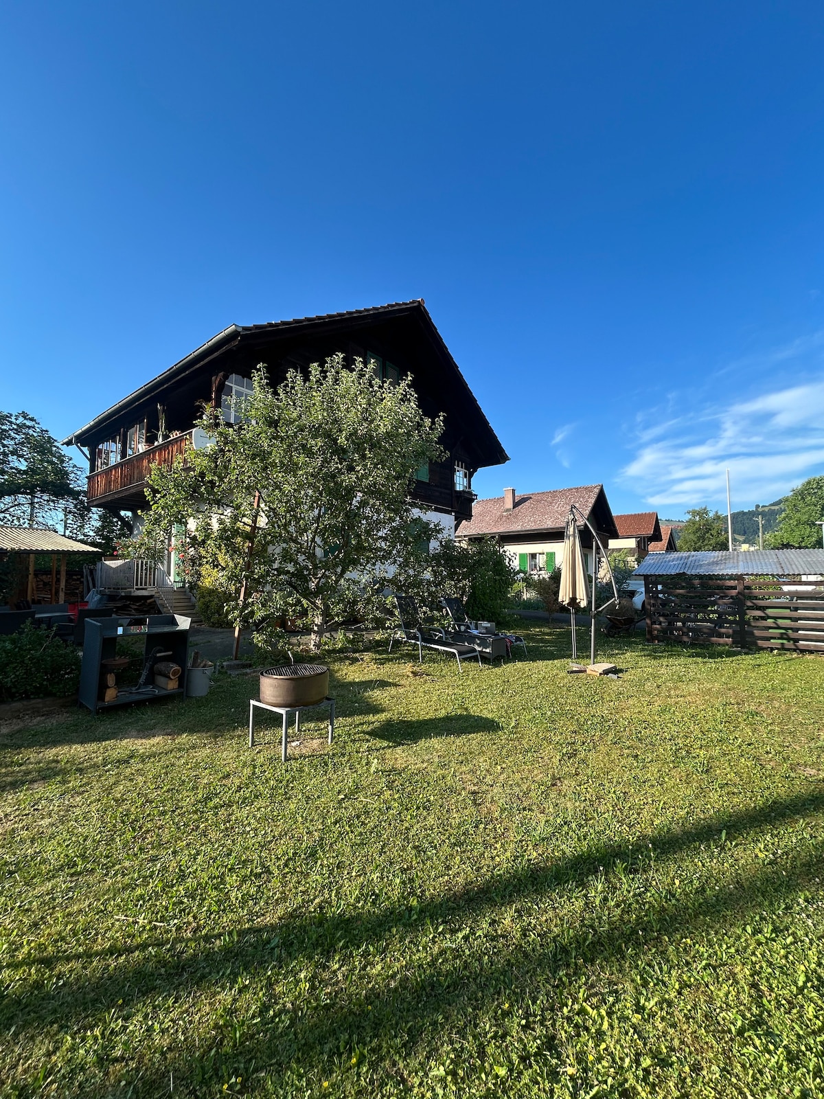 Nasze wspaniałe miejsce na pobyt położone jest w idyllicznej okolicy pięknego kantonu Nidwalden. Idealne na romantyczny weekend we dwoje lub rodzinne wyprawy. Ciesz się spokojem, otoczony malowniczymi krajobrazami i świeżym górskim powietrzem. Liczne możliwości wędrówek i rekreacji czekają na odkrycie. Zrelaksuj się i zostaw codzienność za sobą. Obok – około 40 metrów dalej – znajduje się kolejny namiot (namiot pod jesionem)!