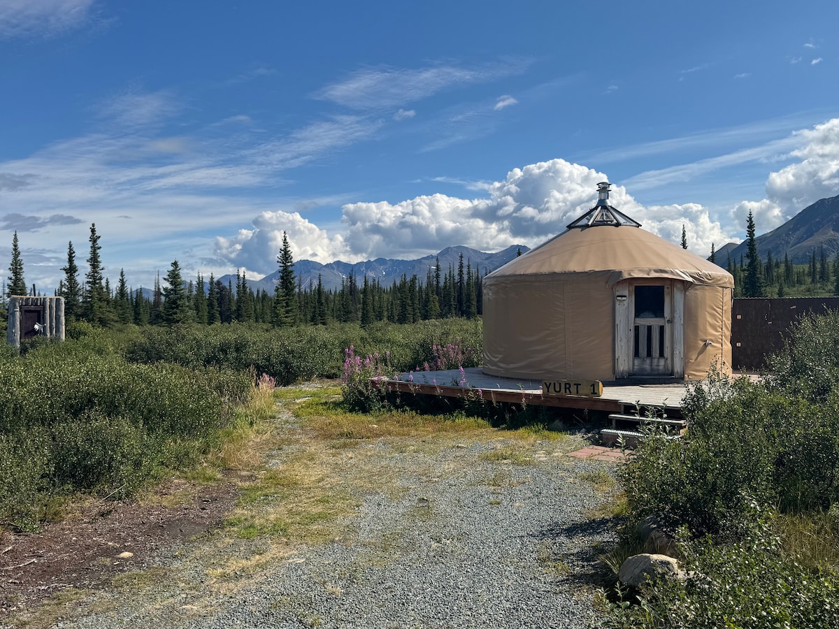Ta 16-stopowa jurta jest idealna dla tych, którzy odwiedzają Park Denali, chcą mieć pełny widok na Denali i mają 360-stopniowy widok tylko na góry, rzekę i las! Jurta znajduje się zaledwie 29 mil od wejścia do parku i jest wyposażona w zasilanie, kuchenkę na propan, światła, piec toyo do kontroli temperatury, piec na drewno i drewno do zakupu (10 USD za pakiet). Będąc na wysokości, możesz wyjść przez drzwi, aby podziwiając wspaniałe widoki, a jeśli jest pogoda, pełny widok na najwyższą górę w Ameryce Północnej!