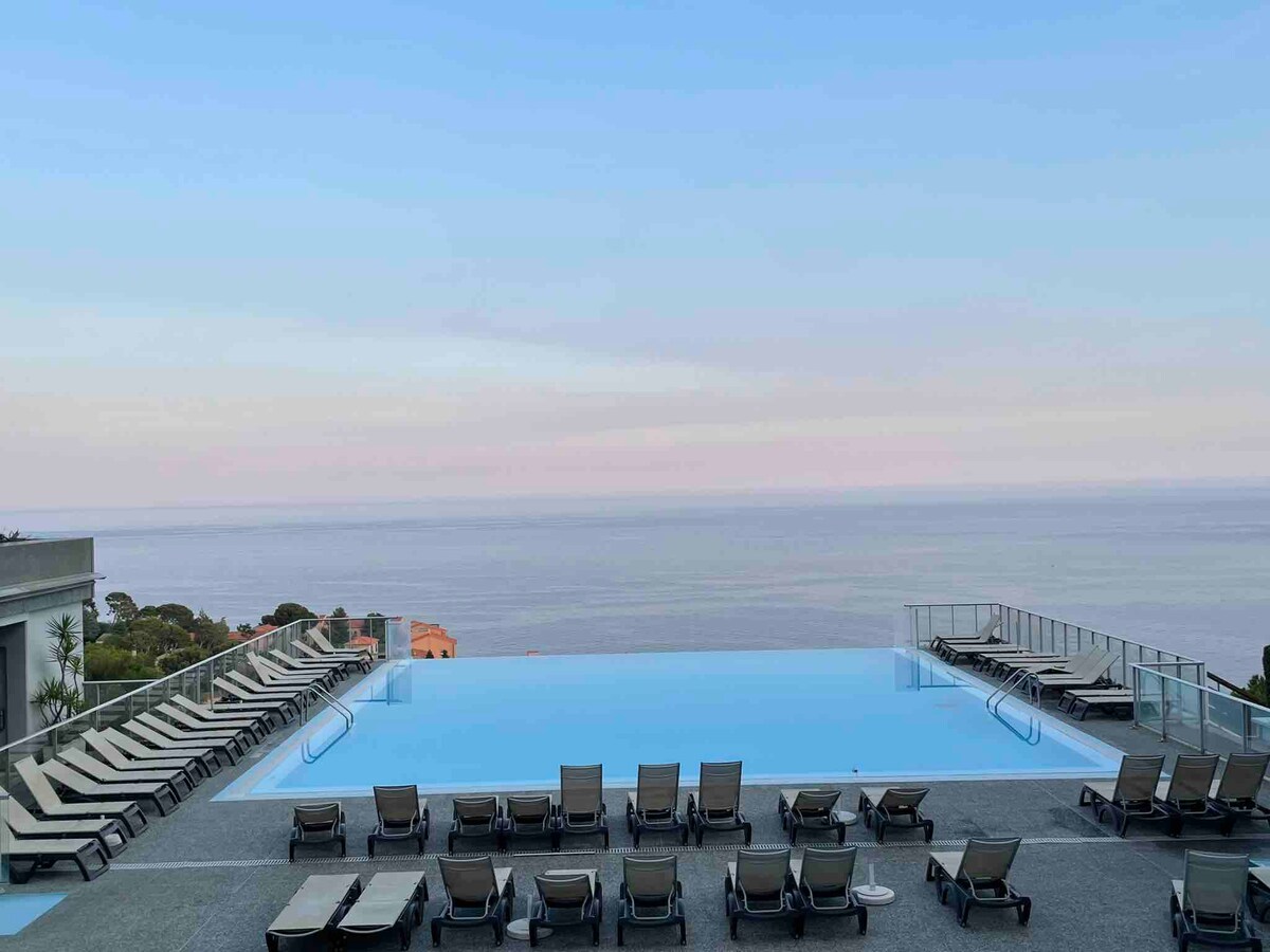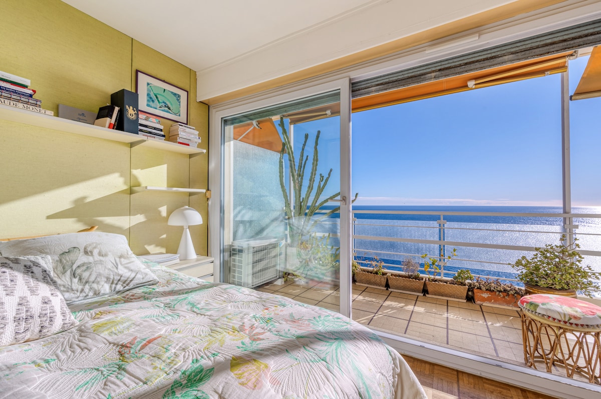 Coquet 2 pièces classé 3 ⭐️ avec une superbe vue mer et le Rocher de Monaco. Parking gratuit. Accès à la plage (10mn à pied). L'appartement est équipé de: Clim, WIFI, TV, Netflix, Nespresso, lave-vaisselle, plaques de cuisson, four, lave-linge, sèche-cheveux, fer et planche à repasser, linge La chambre est dotée d'un lit très confortable de 160x200. Dans le salon, le canapé-lit peut accueillir 2 personnes. Proximité immédiate aux commodités (bus Monaco et France, superette, hôpital...).