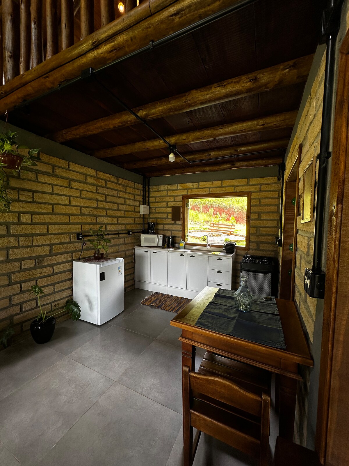 Desfrute de dias tranquilos em um chalé simples, de madeira rústica, ideal para quem busca sossego e contato com a natureza. Conta com piscina, churrasqueira, lareira externa e fogo de chão. No interior, há calefator e fogão a lenha. O mezanino possui duas camas de casal e ar-condicionado, com acesso por escada, podendo não ser ideal para idosos, crianças ou pessoas com mobilidade reduzida. 20 min da praia de Atlântida Sul e 1h de Porto Alegre. Ambiente aconchegante e sem luxo.