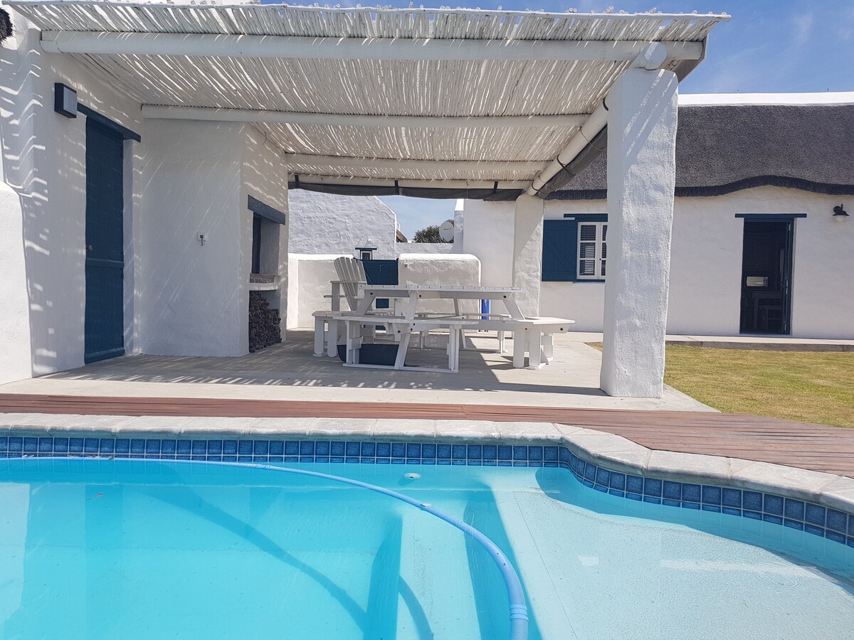 Nasz dom wakacyjny znajduje się w ekskluzywnej posiadłości Langezandt, prywatnej enklawie przy plaży Struisbaai, 2,5 godziny od Kapsztadu. Domek szczyci się nowoczesnymi remontami, a także luksusowo wyposażoną kuchnią, wysokiej jakości wykończeniem i uroczym małym prywatnym basenem. Styl życia na świeżym powietrzu jest idealny do spędzania czasu na świeżym powietrzu. Wybierz się na 4-minutowy spacer na piaszczystą plażę lub zrelaksuj się przy basenie. Wi-Fi z zapasowym akumulatorem „anti-loadshedding” oznacza, że możesz pracować zdalnie, jeśli naprawdę musisz!