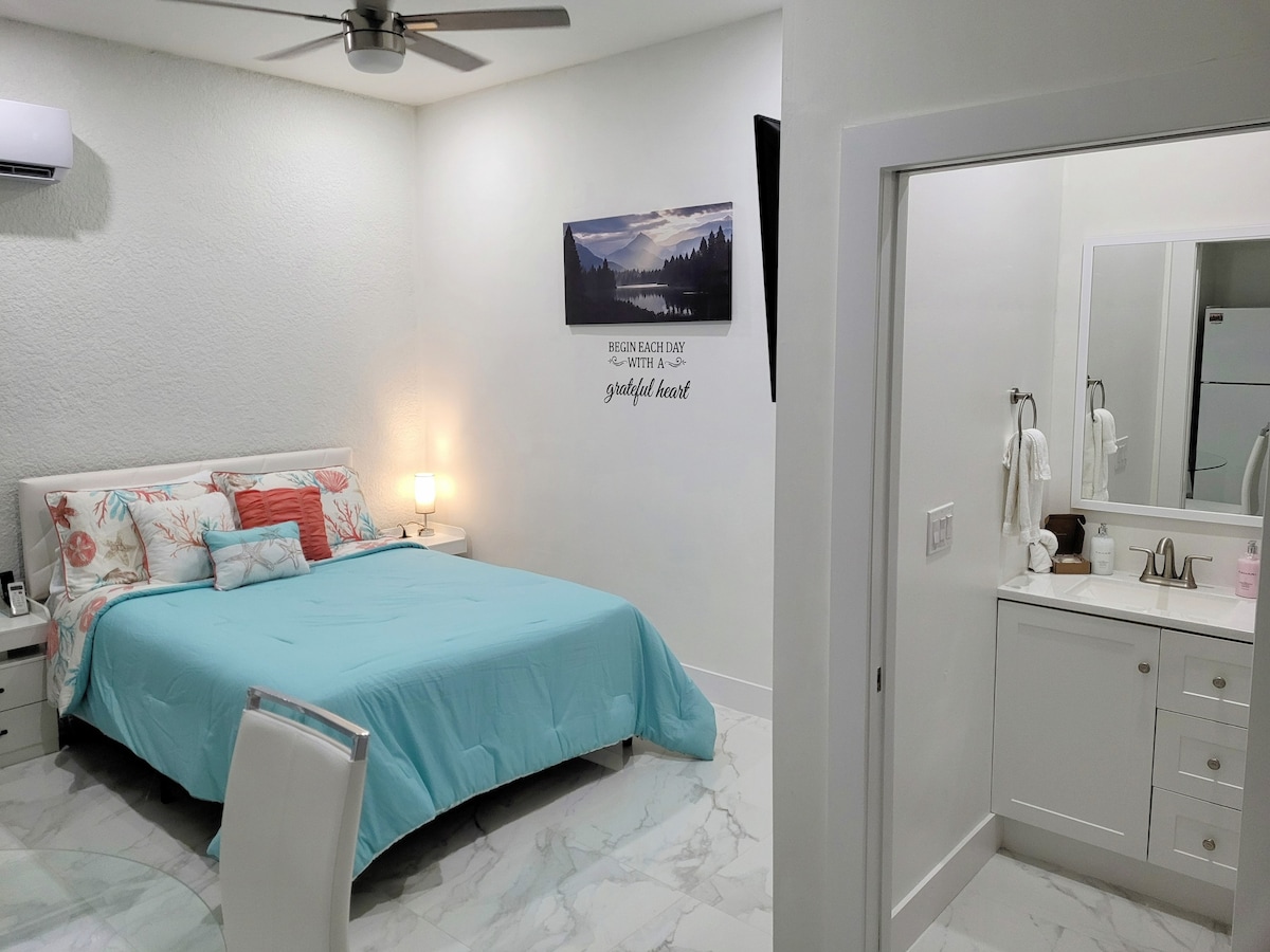 Ten prywatny, w pełni umeblowany apartament jest idealnym miejscem na wypoczynek dla par lub osób samotnych, które chcą się zrelaksować i cieszyć się wszystkim, co ma do zaoferowania południowo-zachodnia Floryda. Położone zaledwie kilka minut od najlepszych restauracji i plaż w okolicy Co Ci się spodoba: Przestronna sypialnia Prywatna łazienka W pełni wyposażona kuchnia Prywatne wejście zapewniające całkowitą niezależność Jadalnia na zewnątrz Grill Szybkie Wi-Fi Niezależnie od tego, czy jesteś tu na romantyczny wypad, czy samotnie, ten apartament ma wszystko, czego potrzebujesz. Zarezerwuj teraz i skorzystaj z atrakcji