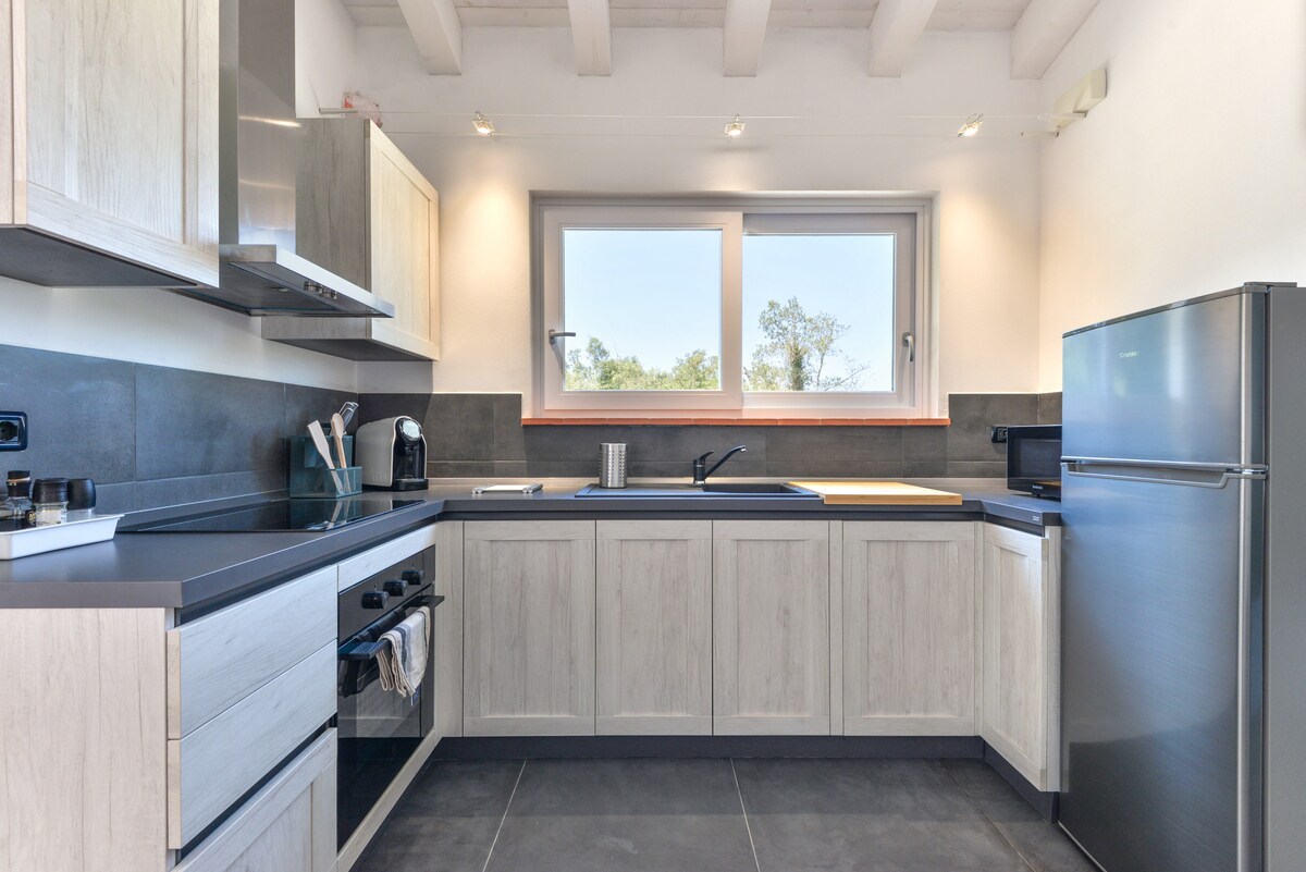 Uroczy i przytulny apartament z jedną sypialnią dla dwóch/trzech osób, urządzony z troską. Prywatny taras jest przestronny i umeblowany z widokiem na morze i sad/winnicę, przed nami nie ma domów, cisza jest idealna do odpoczynku i cieszenia się piękną przyrodą. W domu nie ma pobliskich ulic. Wyposażone w klimatyzację. Prywatny parking. Taras jest odpowiedni dla futrzastych przyjaciół, a taras jest zamknięty.