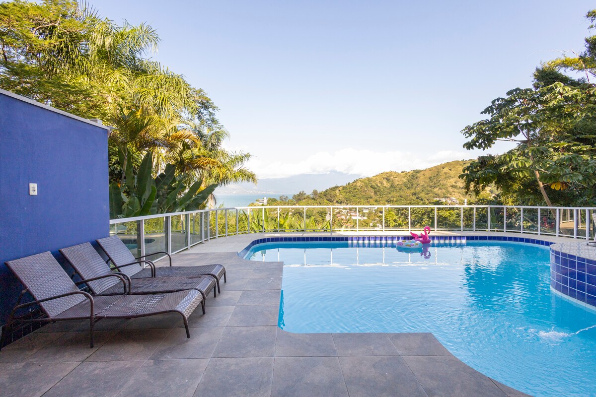 Exclusive oceanfront house next to Ponta Grossa Lighthouse in Ubatuba. Accommodates up to 14 guests with 4 suites, all with stunning sea views. Private access to the pier with direct sea entry for swimming, heated pool, barbecue lounge, ping pong, spacious living areas, and a fully equipped kitchen with freezer and air fryer. Located on the humpback whale route with frequent sightings. Pet friendly!