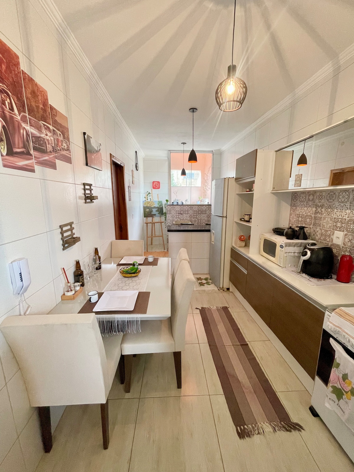 Poczuj prostotę w tym spokojnym i dobrze położonym miejscu. Apartament znajduje się w odległości mniejszej niż 2 km od centrum miasta Conselheiro Lafaiete/MG. Pokój z podwójnym łóżkiem, łazienką, telewizorem, Wi-Fi i balkonem ze specjalnym widokiem. Pokój z dużą przestrzenią wewnętrzną, dobrze wentylowany i z unikalnym wystrojem. W pełni wyposażona kuchnia, stół do jadalni, ławka ze specjalnymi krzesłami; i jeszcze odrobina przytulności. Miejsce do pracy zdalnej, a także do odpoczynku. Będzie nam miło powitać Cię w naszym obiekcie!