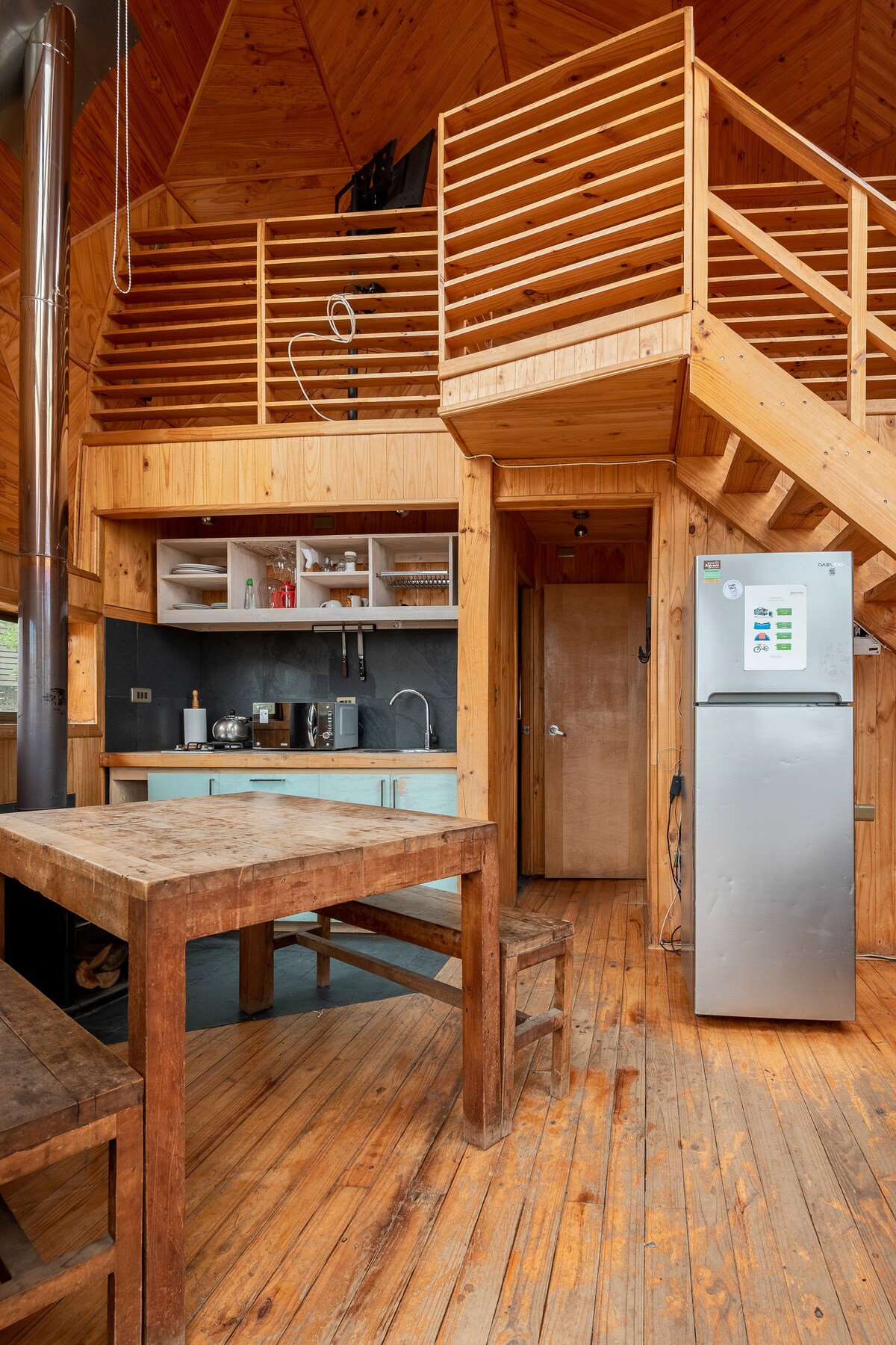 Escápate a esta acogedora cabaña para 3 personas, rodeada de flora y fauna, a solo 10 minutos de la playa de Matanzas. Disfruta de la tranquilidad y la desconexión en un entorno único, con vistas espectaculares de las estrellas y la naturaleza . Relájate en el hot tub privado de uso libre incluido en tu estadía , comparte momentos inolvidables en el quincho equipado para asados y disfruta del acogedor calor de la estufa a leña. Un refugio perfecto para descansar y conectar con la naturaleza.