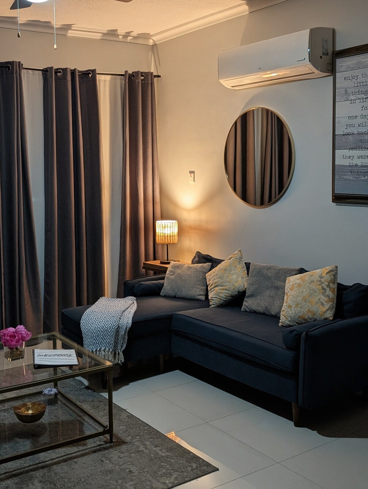 Ucieknij do tego przytulnego miejsca w bezpiecznej, ogrodzonej społeczności Caribbean Estates, Portmore, położonej mniej niż 5 minut od głównych sklepów i rozrywek oraz 10 minut od pięknej plaży Fort Clarence. Ta spokojna oaza łączy eleganckie wnętrza z pięknym krajobrazem na zewnątrz z prywatnym tarasem i przestronnym drewnianym tarasem. Zaprojektowany z myślą o komforcie, bezpieczeństwie i spokoju – zrelaksuj się i nawiąż kontakt z naturą. Idealne dla par, rodzin lub osób podróżujących samotnie, które szukają miejsca na wypoczynek.