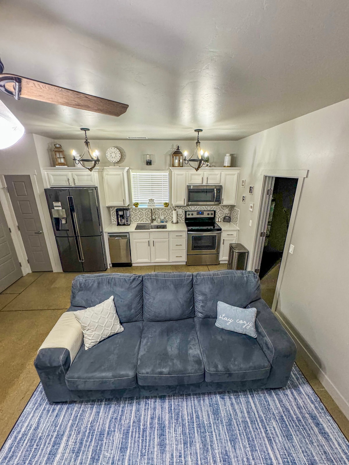 Oszałamiająca, niedawno odnowiona casita dla gości położona w urokliwej, zadrzewionej okolicy. Kilka minut od centrum miasta i najlepszych restauracji w Carlsbad. Piękna sypialnia z niestandardowymi meblami i uroczym kominkiem. Główna łazienka wyposażona jest w dużą kabinę prysznicową oraz dużą wannę – idealne miejsce na relaks po pracowitym dniu w Jaskiniach lub w pracy. Kuchnia wyposażona jest w nowe urządzenia i jest w pełni zaopatrzona.