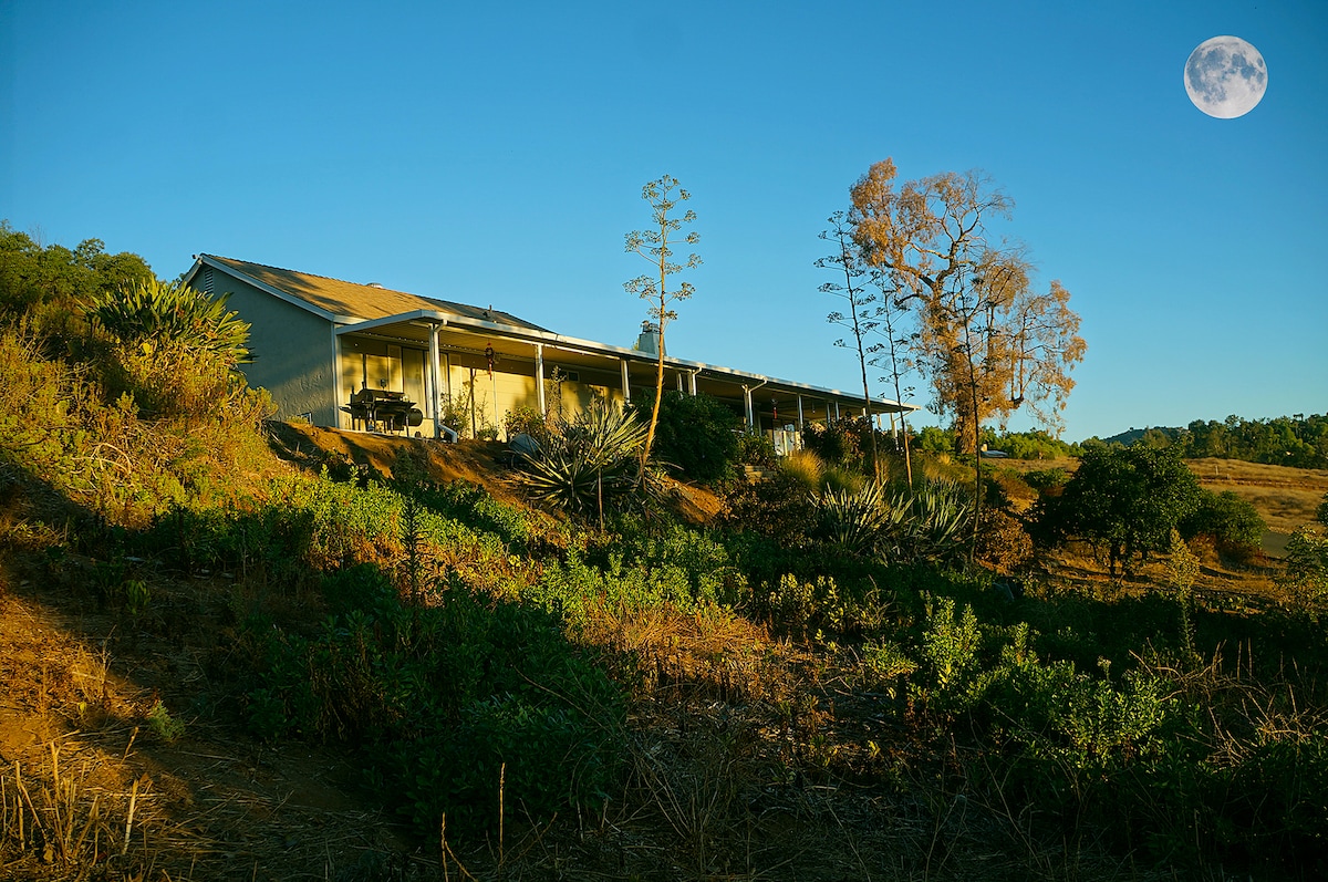 UPDATED policy: we are in a high fire danger area and have a NO open flame smoking policy. Vaping IS allowed as are 420 pens. $500 cleaning fine & termination of reservation if violated. Located in North County of San Diego near Oceanside & Camp Pendleton. Private, 1 Bdrm. Full sized kitchen, deck, BBQ, and a Queen pull out bed. Fully stocked Kitchen, WIFI & Smart TV. Quiet area with delightful breezes & great sunsets! Breakfast items, fresh honey & eggs provided (subject to availability)