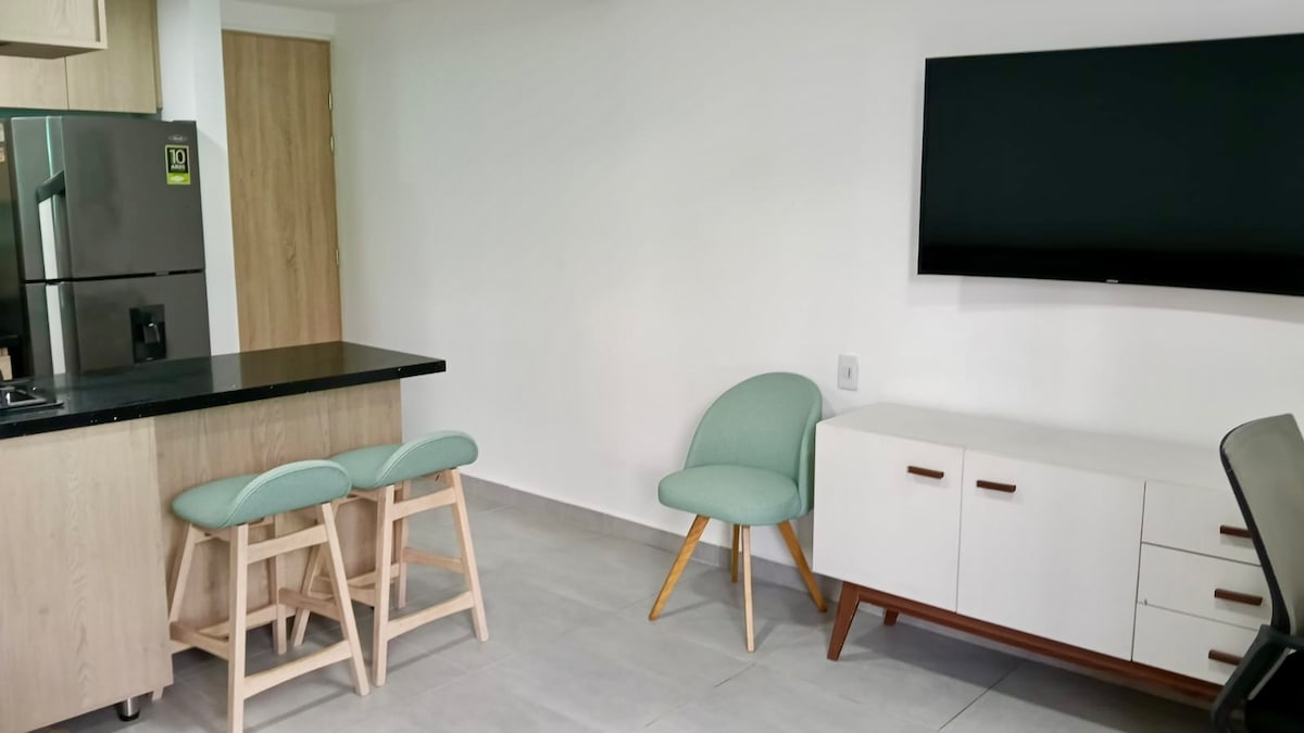 Piękne i przytulne mieszkanie w centrum Carmen de Viboral z jedną dobrze wyposażoną sypialnią główną, przestronnym i jasnym salonem z rozkładaną sofą, w pełni wyposażoną kuchnią, łazienką i dużym tarasem z grillem. Ten apartament ma piękny widok na wioskę i świetne przestrzenie, które można dzielić we dwoje lub z rodziną. 1 minuta od głównego parku, blisko aptek, bankomatów, supermarketów, restauracji i innych miejsc. To idealne miejsce na odpoczynek i relaks.