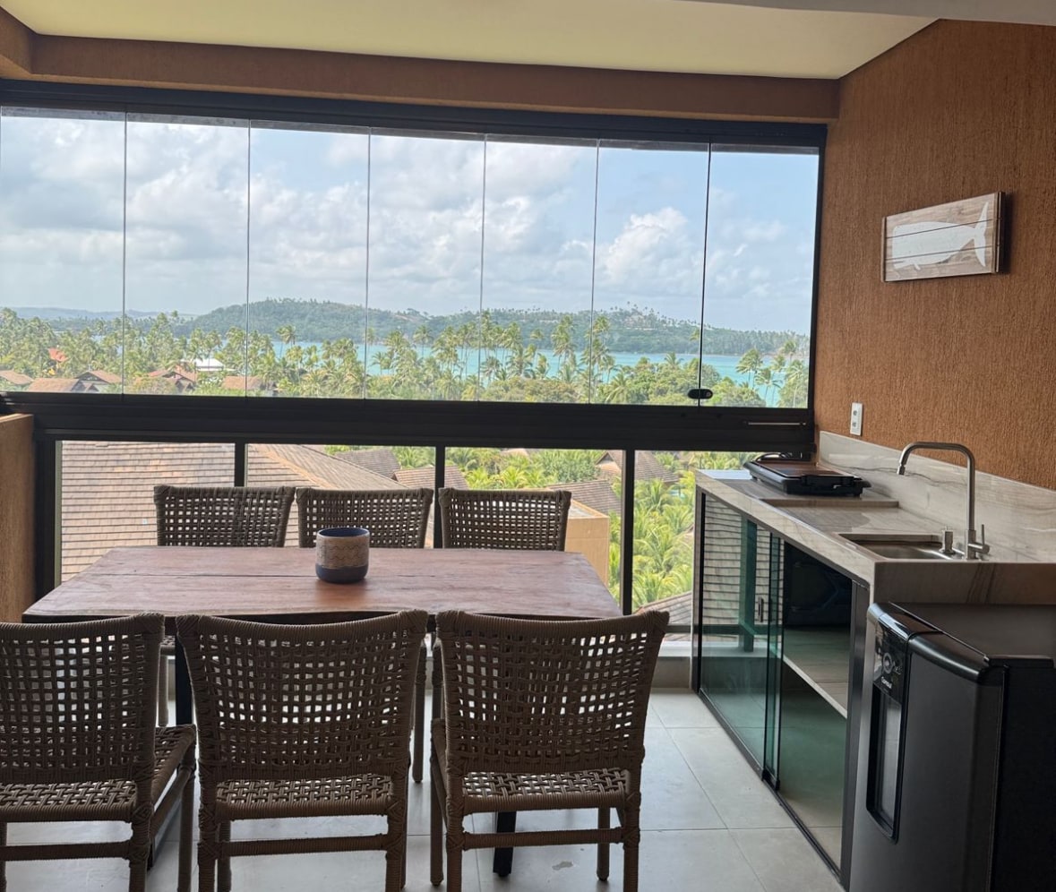 The apartment is in Eco Resort Praia dos Carneiros, right on the beachfront, next to the famous little church. It has 2 bedrooms and 65m² of space. It features a suite with a queen-size bed and a convertible suite with a standard double bed and an extra bed. The living room has a sofa bed. It has a balcony with a glass curtain. The apartment is located in the Colina sector, Tower 5, which, as the highest point in the Eco Resort, offers the best views of the beach, river, and coconut groves.