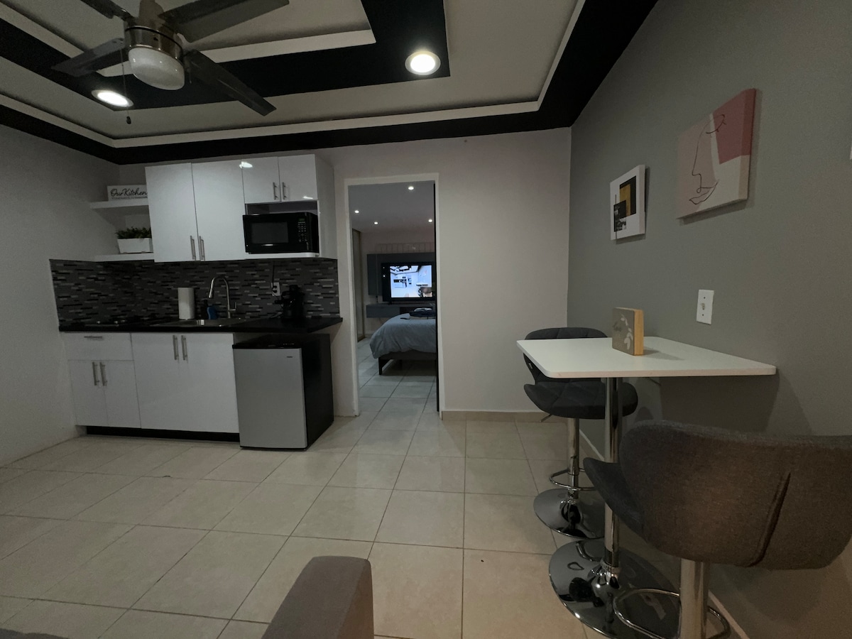 A solo 9 minutos del Aeropuerto Internacional Luis Muñoz Marín (SJU), nuestro acogedor estudio ofrece comodidad y tranquilidad en una zona céntrica. Ideal para quienes buscan relajarse entre vuelos, viajeros de negocios o vacaciones cortas A tu alcance tendrás tiendas, restaurantes, museos y atracciones. Dispone de wifi, TV 65”, cama full size, baño moderno y cocina equipada. Perfecto para una estancia sin preocupaciones. ¡Todo lo que necesitas para sentirte como en casa, cerca de todo!