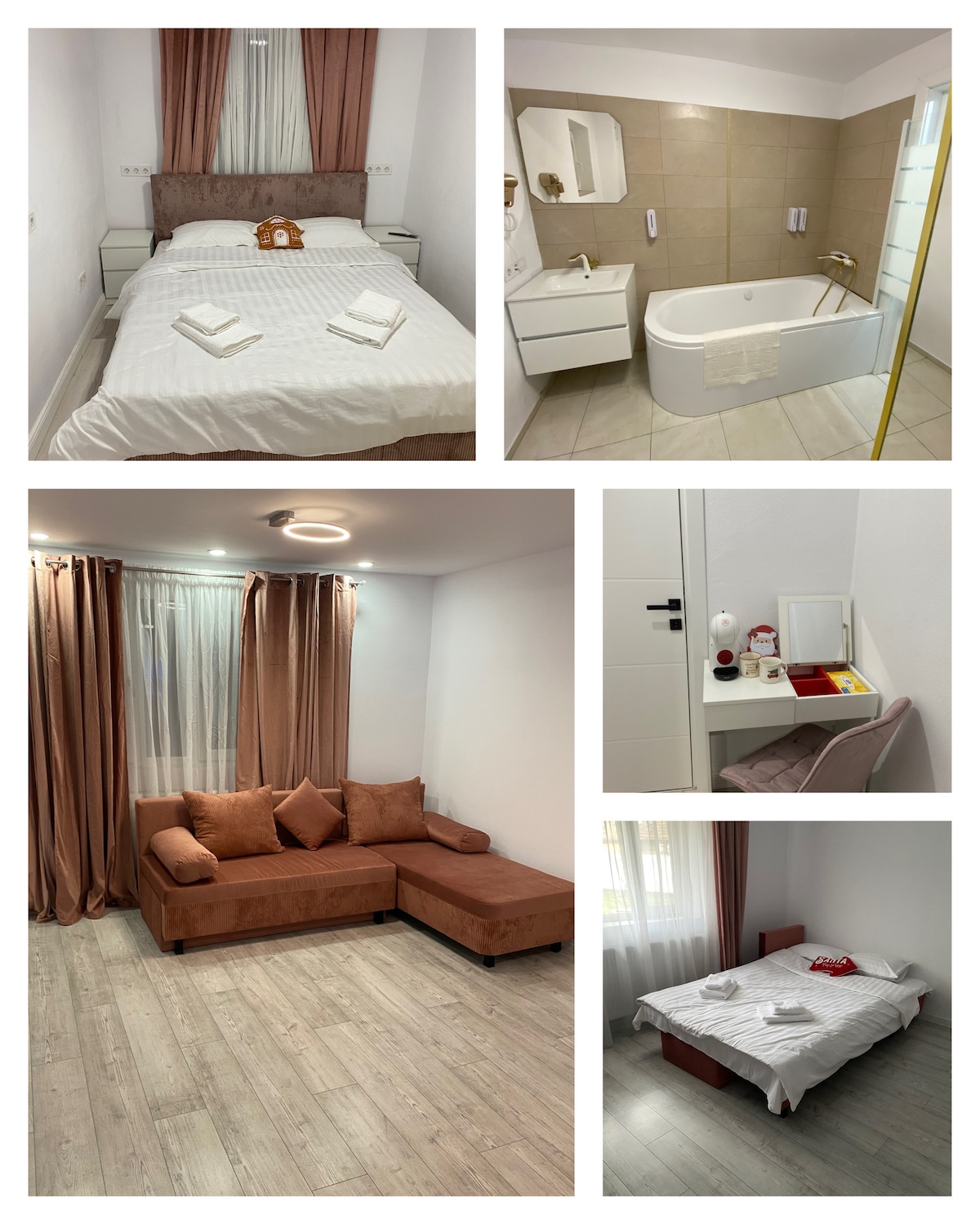 Pokoje to 3-gwiazdkowa nieruchomość (sklasyfikowana przez Ministerstwo Turystyki) położona w Bacau, 1,2 km od centrum, 3 km od międzynarodowego lotniska Bacău i 1,8 km od dworca kolejowego. Pokoje wyposażone są w łazienkę z prysznicem i bezpłatnym zestawem kosmetyków, klimatyzację, mini lodówkę, Smart TV(Samsung Qled 101cm),WiFi, materace Dormeo i na życzenie mogą pomieścić w pokoju przenośne biuro, aby stworzyć dedykowane miejsce do pracy. Bezpieczna stacja transferu/blatu z lotniska.