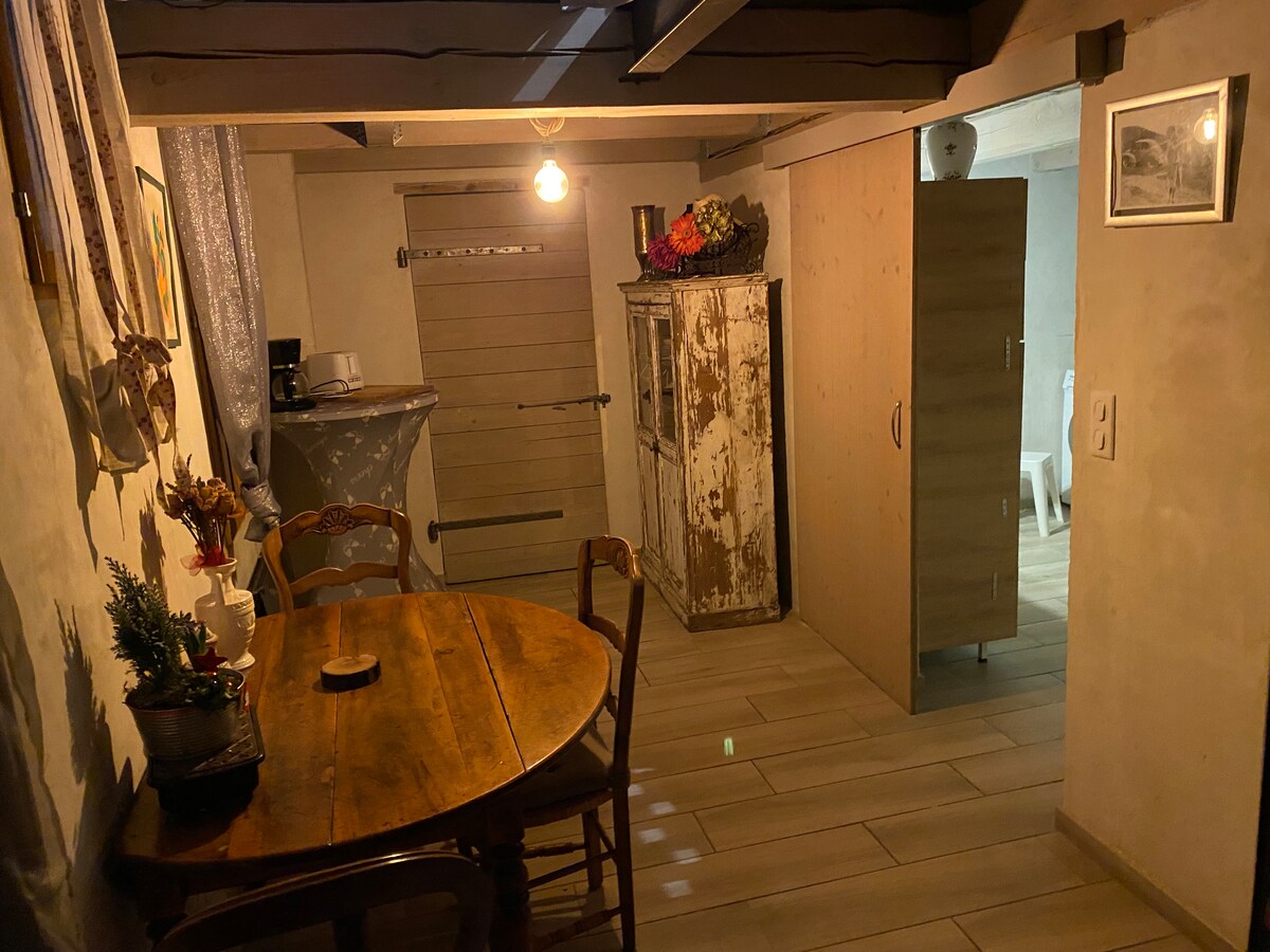 Niezależne studio jest częścią naszego domu, ma 24 m². Możesz zaparkować samochód w naszym ogrodzie, miejsce jest zarezerwowane dla Ciebie. Jest wyposażone w telewizor, a także dużą szafę do przechowywania rzeczy. Aneks kuchenny wyposażony jest w lodówkę, kuchenkę mikrofalową, płytę indukcyjną. Łazienka jest mała, ale funkcjonalna. Obiekt znajduje się w pobliżu parku wodnego Wave Island, parku Spirou (10-15 min), Isle-sur-la-Sorgue (20 min).