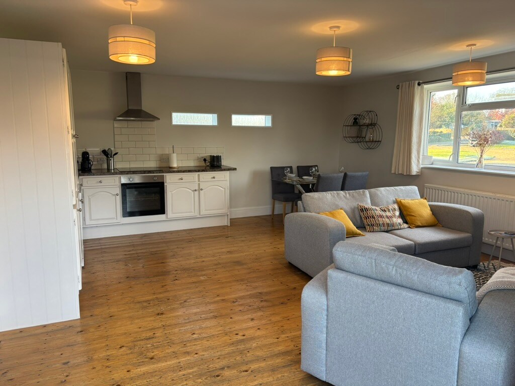 Przestronny aneks z jedną sypialnią i własną kuchnią i prysznicem. Dostępnymi własnymi drzwiami (uważaj na głowę!), mały hol wejściowy prowadzi do kuchni, prysznica i do dużej sypialni z widokiem na południe z wysokimi sufitami i dużymi oknami z widokiem na trawnik głównego domu. Zrelaksuj się na wygodnej sofie lub delektuj się posiłkami przy stole. W pełni wyposażone na krótkie lub dłuższe pobyty. 20 minut spacerem przez pola do pubu The Farmer's Dog.