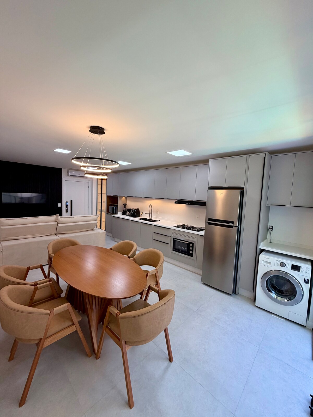 Przestrzeń przeznaczona dla gości na wakacjach lub do pracy w nowym budynku. Przestronny apartament o powierzchni 80 m2 i dwie sypialnie (jedna z łazienką) do prywatnego użytku gości. Świetna lokalizacja 100 metrów od początku Interpraias i 400 metrów od Historic Center of Barra, gdzie powstał Balneário Camboriú, w pobliżu restauracji, supermarketów, piekarni i aptek - wszystko w odległości spaceru.