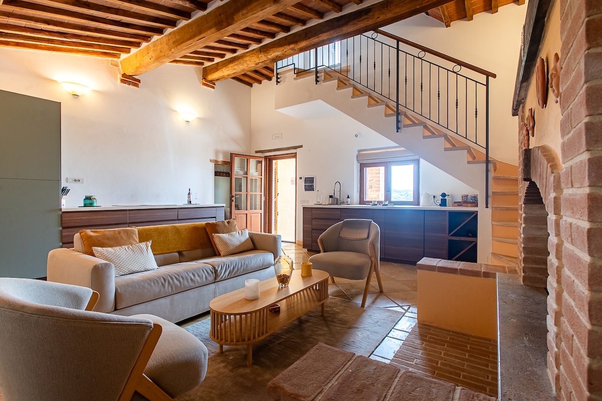 Recently renovated Casa Etruria features a chic modern home inside its ancient stone walls, with every modern convenience,lots of original charm and the most beautiful sunset view from the bedroom and balcony . Casa Etruria is a 13th century gate house over the Western entrance to Trequanda - Porta al Leccio. Trequanda is medieval borgo located in Val d'Orcia , south of Siena. Val d'Orcia was recognised by UNESCO in 2004 as a World Heritage Site for its outstanding beauty.