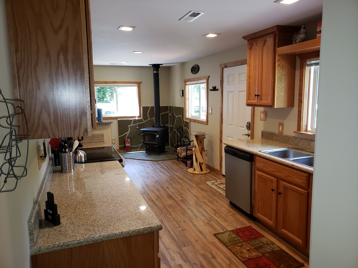 Kajaki, przyroda i internet w tym nowoczesnym miejscu wypoczynku w Creekside! Brama do Parku Narodowego Crater Lake, Klamath Basin i Diamond Lake, ta chatka jest klejnotem oferującym spokojny wypoczynek z 3 sypialniami i 3 łazienkami. Piękne wnętrze, czyste, wygodne ze wszystkim, czego potrzebujesz do odpoczynku lub bazy wypadowej na przygodę! W pełni zaopatrzona kuchnia i grill czekają! Pralka i suszarka w domu! Dok i kajaki są przeznaczone dla gości i dzielone z naszym domkiem obok. Orły, kaczki, bobry tuż za drzwiami!