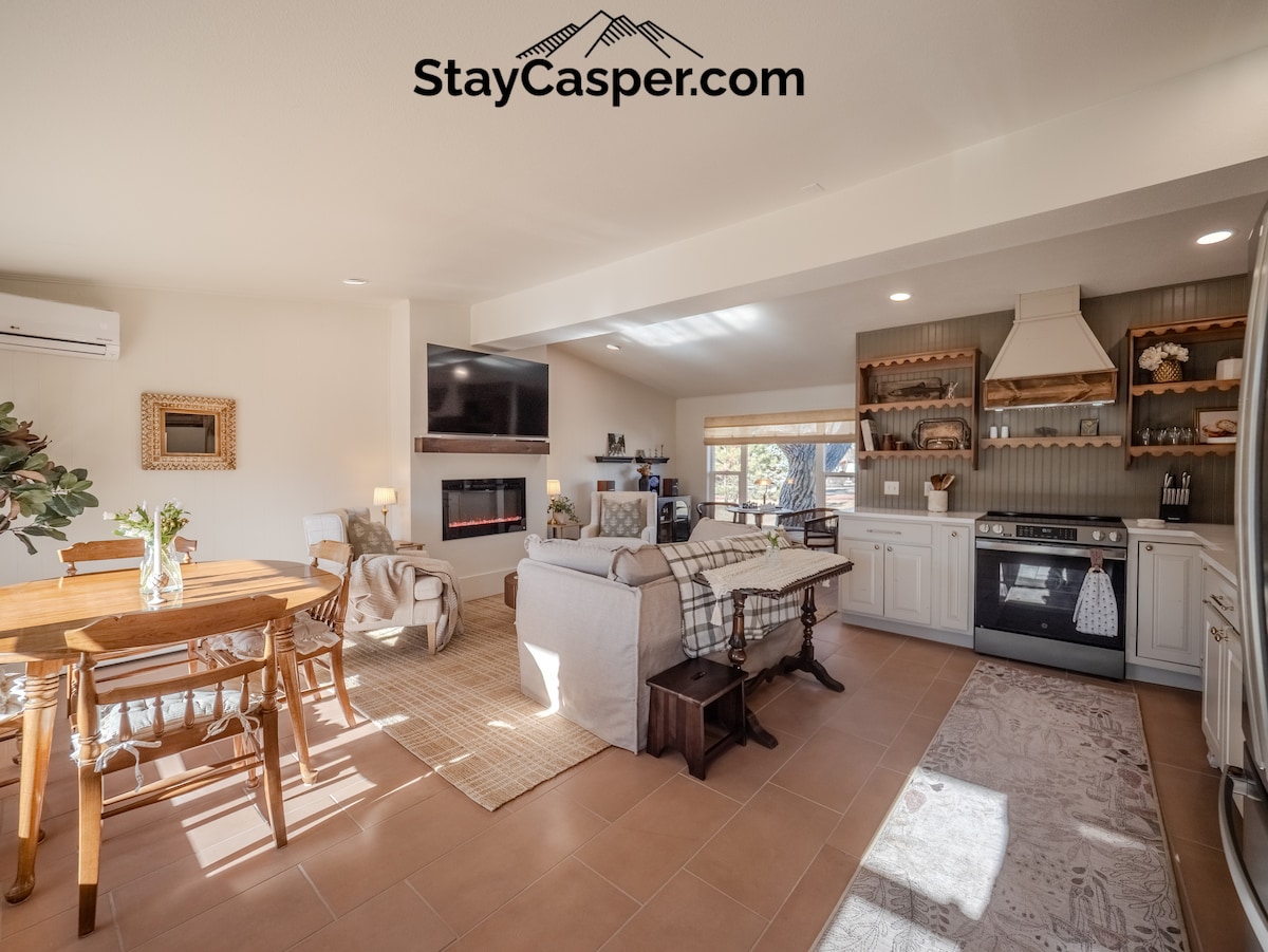 This charming home is nestled in a quiet neighborhood just 5 minutes from downtown Casper. It offers 2 luxurious queen beds, comfortably accommodating up to 4 guests. The space is warm and inviting; the home has central gas heating and SEASONAL AC units in each bedroom and living area. Guests can also enjoy WiFi and a fully equipped kitchen, perfect for cooking. No pets. A Ring doorbell is installed at the entrance, providing added security by recording guest entry and exit.