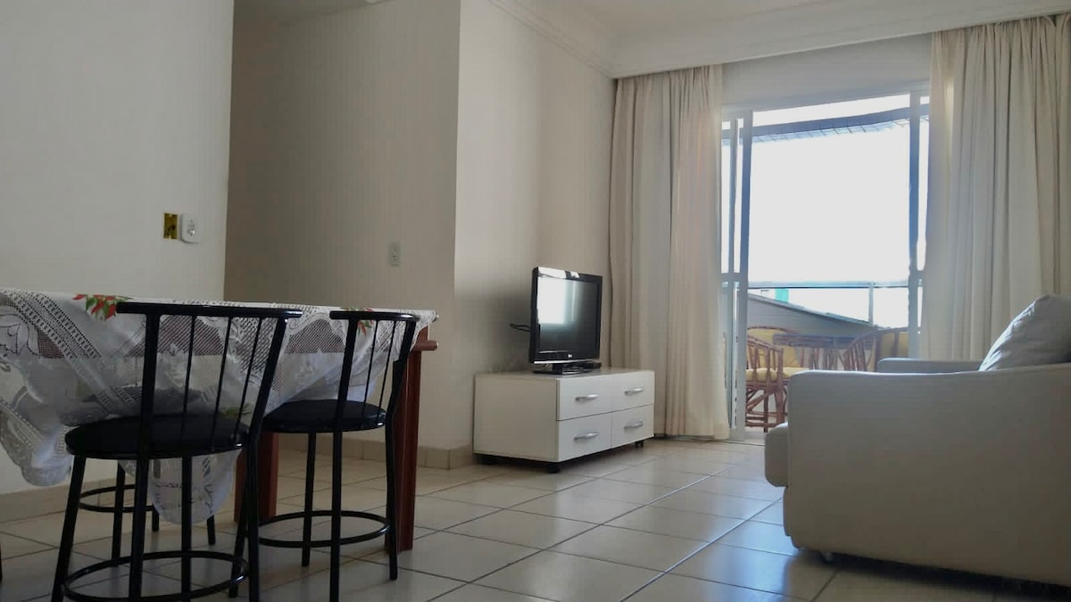 Apartament w Enseada Azul z Wi-Fi w Guarapari, 300 metrów od plaży Bacutia: 1 pokój z podwójnym łóżkiem i dwoma dodatkowymi łóżkami, telewizorem Smart TV, klimatyzacją i miejscem do pracy; 1 łazienka Kompletny pokój z sofą, która może służyć jako łóżko Kuchnia wyposażona we WSZYSTKIE przybory; Pralnia ze sznurkiem do suszenia i pralką; 1 miejsce parkingowe; Budynek z windą; Doskonała lokalizacja, z piekarnią na parterze. 300 metrów od plaży Bacutia i Peracanga (nie ma potrzeby korzystania z pojazdu)