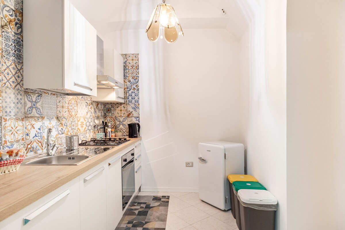 Eleganckie mieszkanie położone w prestiżowej dzielnicy Vomero, w zabytkowej, stuletniej willi niedaleko zamku Sant'Elmo. Łącząc historyczny urok z nowoczesnymi udogodnieniami, apartament stanowi idealną bazę dla gości poszukujących wysokiej jakości zakwaterowania w Neapolu, z doskonałymi połączeniami z głównymi atrakcjami. Mieszkanie jest otoczone zielenią, a jednocześnie znajduje się blisko zabytków, sklepów i transportu publicznego. To idealna baza wypadowa do zwiedzania Neapolu i jego okolic.
