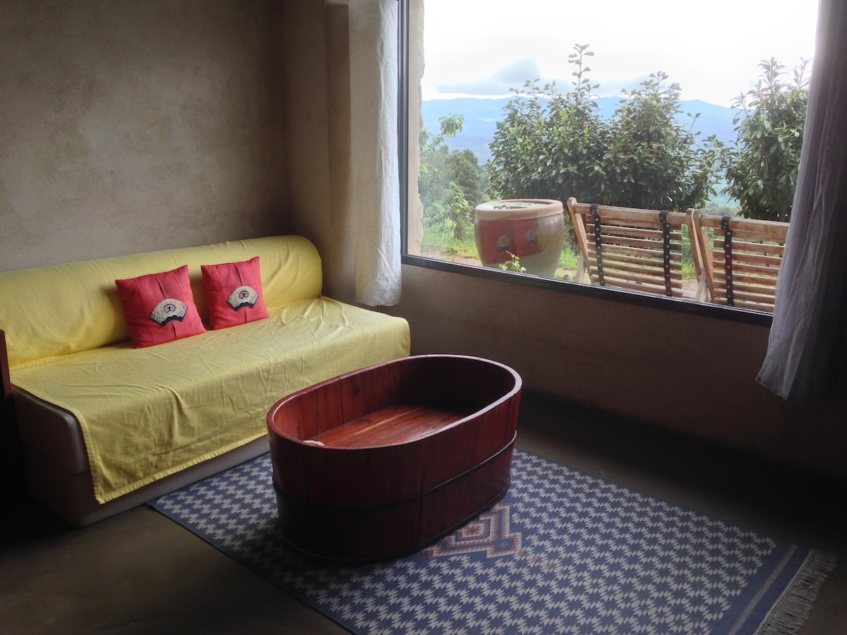 - pokój o powierzchni 20m2 z bezpośrednim dostępem do dużego dziedzińca kwiatowego domu - łóżko 1,40m x 2,00m - Pościel w bawełnie Percal 100% - Łazienka jednoosobowa z prysznicem - Suszarka do włosów - Ręczniki 100% bawełny - Udogodnienia - Ogrzewanie podłogowe - Klimatyzacja - Wi-Fi - TV - Ekspres do kawy i kapsułki Nespresso - Wybór czajnika i herbaty - Woda kopalna - Czekoladki - Prywatny taras ze stołem i krzesłami - Basen - Parking na terenie nieruchomości