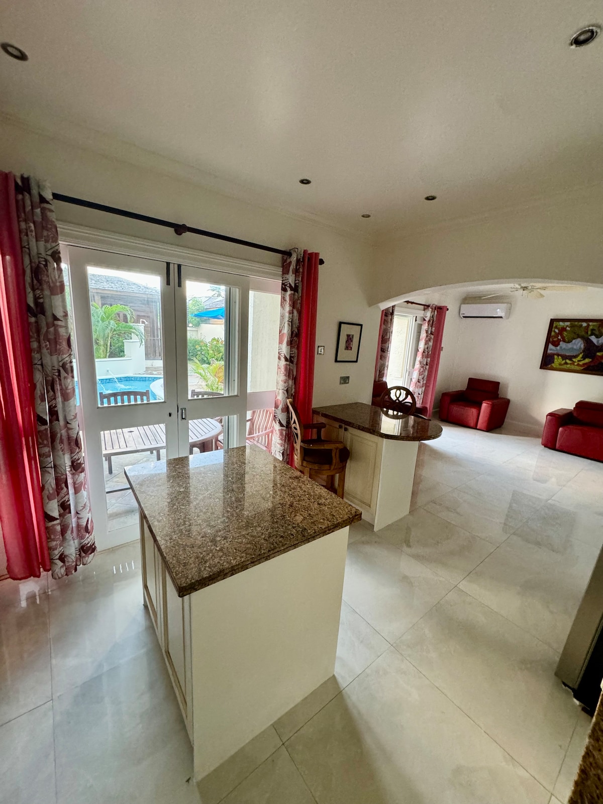 A spacious, serene and private haven overlooking the Caribbean Sea. A stunning location. Perfectly situated to easily get to the north, south east or west of the island. This one bedroom king suite is very spacious and with a private terrace and views of the ocean and tropical gardens. Large open air living and dining areas, fully equipped kitchen & private pool access. The large pool is exclusively used by apartment guests. Close driving distance to public beaches, restaurants and resorts.