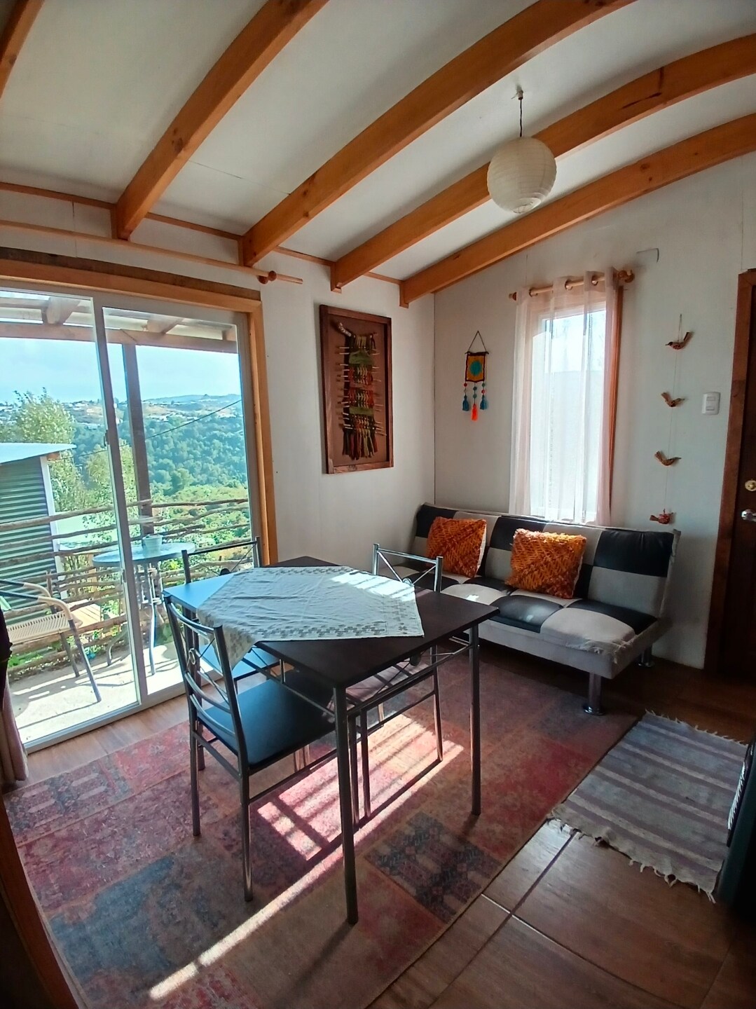 Licz na wszystko, co jest potrzebne do relaksującego pobytu. Posiada łazienkę, wyposażoną kuchnię, jadalnię i podwójne łóżko z puchu. Znajduje się w Nercón, pięknym mieście Chiloé, zaledwie kilka minut od Castro, ale jednocześnie wprowadzonego do wiecznie zielonego lasu tego fascynującego regionu. Miejsce jest bardzo piękne i otoczone szlakami, na których można wędrować. Jestem artystą i mam własny warsztat i dom na tym samym polu. W razie potrzeby mogę udzielić Ci dobrych informacji. Witaj