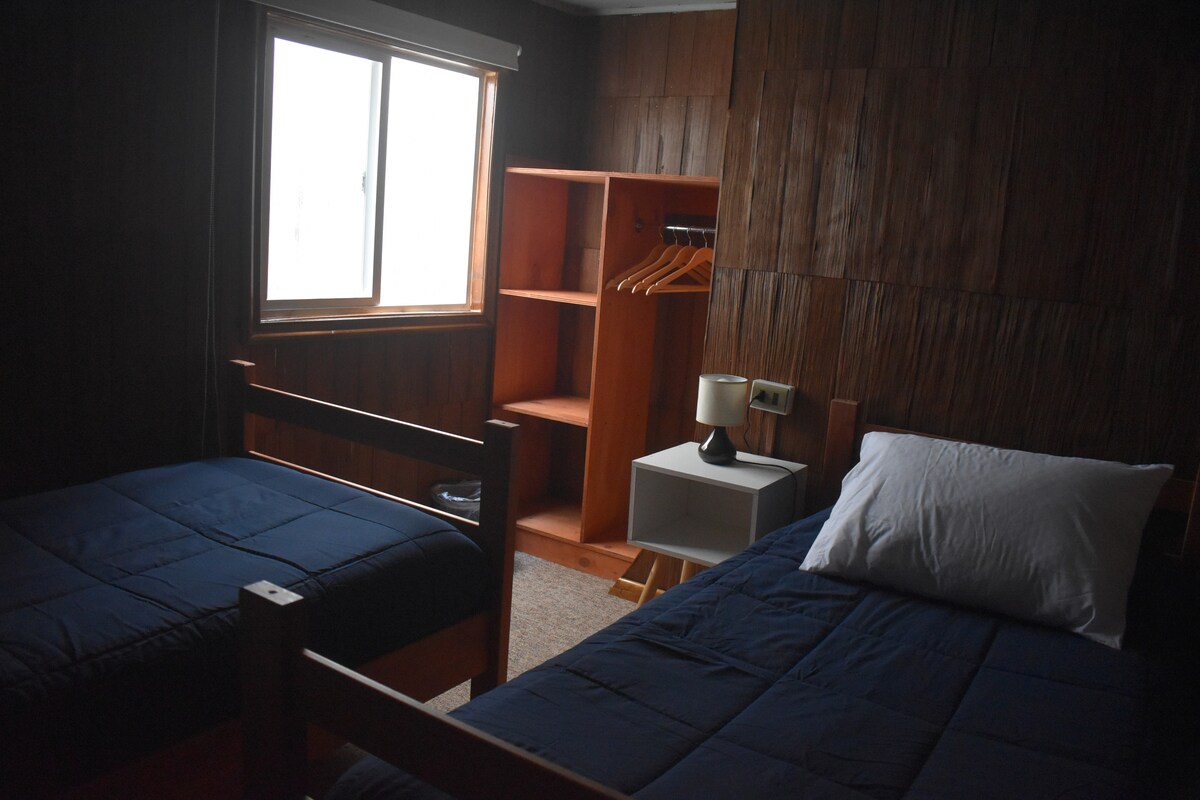 House equipped 5 persons... located 3 minutes from downtown by vehicle, collective locomotion outside the house. It is interior dpto with independent entry, parking, pellet heating, wifi, roku, etc. W głównym domu (do przodu) mieszkają moi rodzice, którzy przekazują klucze do domku i zajmują się wszystkim, czego potrzebuje gość. Torba na pellet jest dostarczana co 3 dni pobytu. Nie ma ręczników prysznicowych. Tylko w przypadku tematów związanych z przestrzenią, zwierzęta nie są akceptowane.
