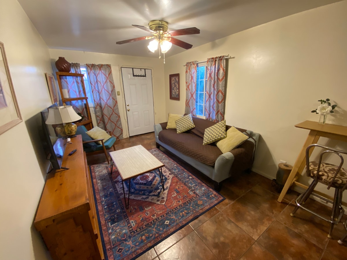 Nasz domek jest odpowiedni dla 2 osób, posiada oddzielną kuchnię, łazienkę 3/4 oraz duży pokój główny do spania lub relaksu. Oferujemy prywatne wejście z parkingiem wiata. Podwórko jest ogrodzone, z drzwiami dla psa, mile widziane są maksymalnie 2 zwierzęta. Centralnie położony, w odległości kilku minut od lotniska, centrum miasta i Uniwersytetu Arizony. Jesteśmy w odległości spaceru od Reid Park, gdzie można zagrać w golfa lub odwiedzić zoo. Mimo że jesteśmy w centrum miasta z łatwym dostępem do wielu obszarów miasta, znajdziesz go zaskakująco cicho.