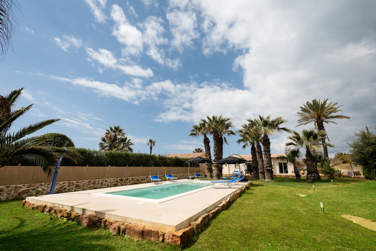 Villa Dafni to nowa luksusowa willa położona w pięknym, panoramicznym miejscu, z widokiem na plażę Plaja Grande, która znajduje się w odległości zaledwie 800 metrów. Widok rozciąga się na morze, między pagórkowatym krajobrazem Ibleo a słynną latarnią morską Montalbano. Restauracje, bary i sklepy znajdują się w odległości 5 minut jazdy samochodem. Apartament wewnątrz willi z dużym ogrodem jest dostępny dla gości do wyłącznego użytku, dostęp do podgrzewanego basenu i prywatnego parkingu na terenie nieruchomości.