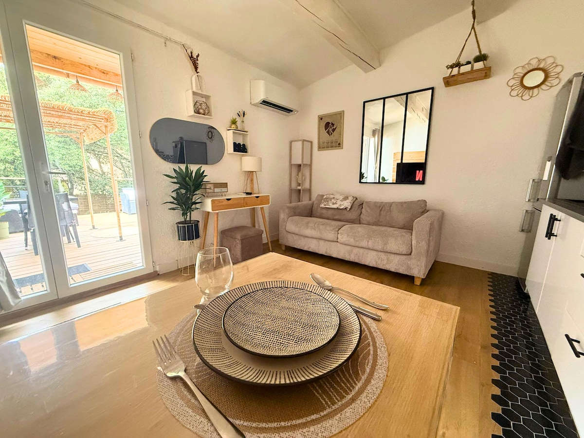 Niché au cœur de la garrigue des hauts de Nîmes, à seulement 10 minutes du centre historique, ce mas mitoyen de 40 m² allie élégance et confort dans un environnement d’exception. Il propose une vaste chambre avec vue sur le jardin paysagé, une cuisine entièrement équipée ouverte sur un salon, ainsi qu’un jacuzzi privatif pour des instants de détente absolue. À quelques pas, des terrains de tennis et de padel vous invitent à varier les plaisirs entre loisirs sportifs et moments de quiétude.