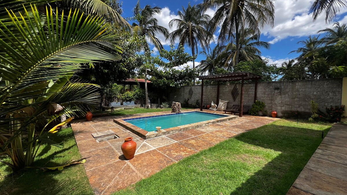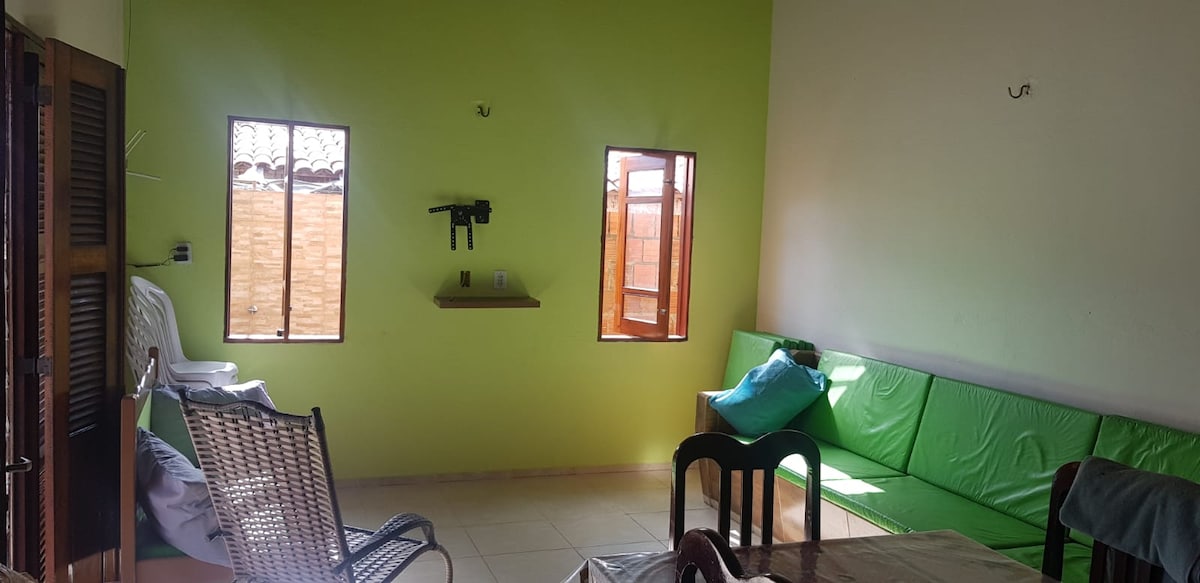 Zrelaksuj się z całą rodziną w tym spokojnym miejscu. Posiada 4 pokoje, w tym 2 apartamenty (wszystkie z klimatyzacją), wyposażoną kuchnię, salon z telewizorem, Wi-Fi, basen i taras z grillem. Położony na plaży Guajiru, przy głównej ulicy, 500 m od plaży. W pobliżu plaż Flecheiras i Mundau. W pobliżu sklepy, restauracje i apteka.