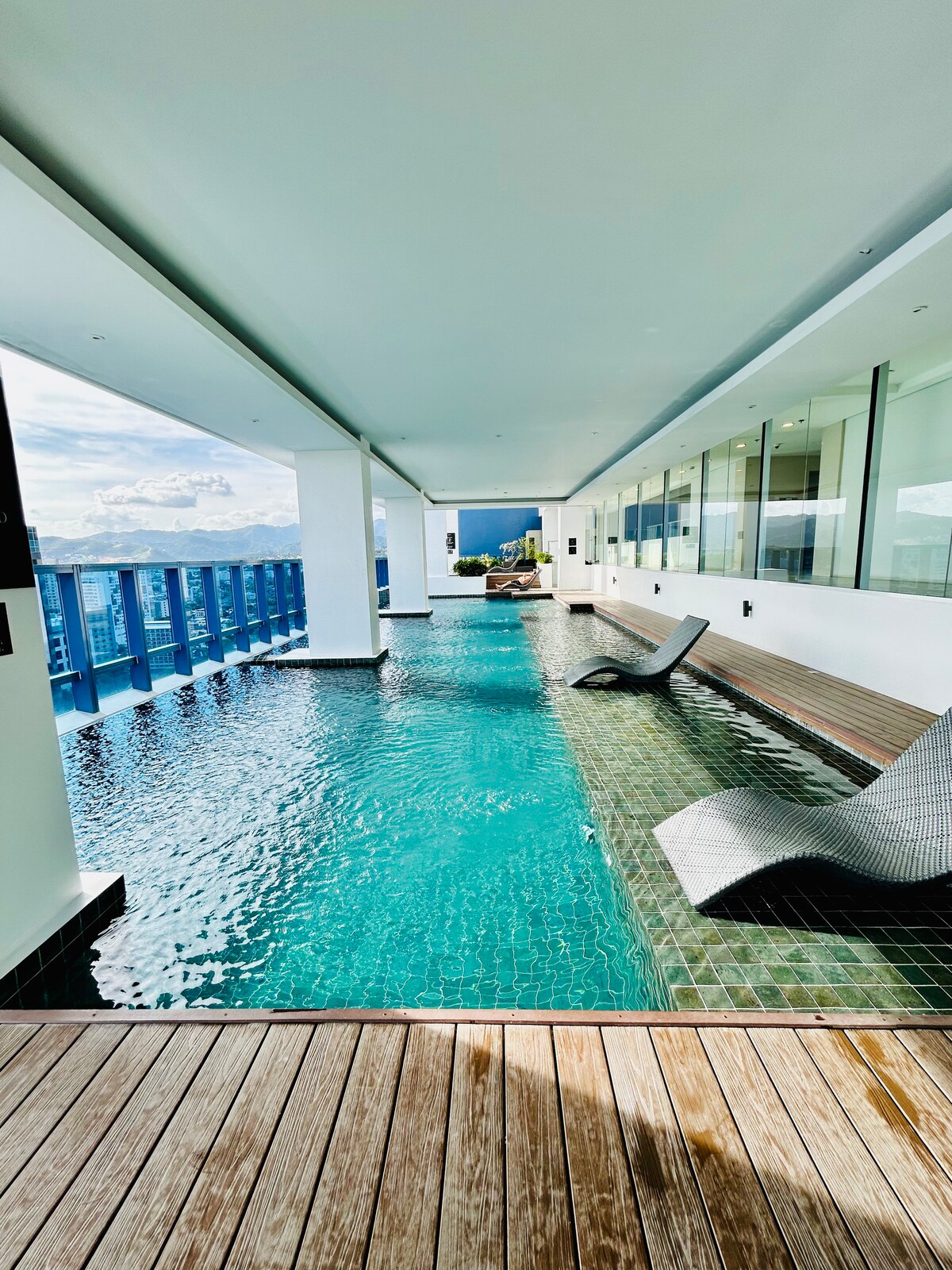 Poznaj wysokiej klasy mieszkanie w tym luksusowym studio na 22. piętrze przy Park Avenue 38, IT Park, oferującym eleganckie widoki na miasto i zatokę. Dobre dla czterech osób. Korzystaj z prywatnego projektora kinowego, pluszowej rozkładanej sofy, roślin doniczkowych i klimatyzacji, która zabija zarazki. Prysznic z ciepłą i zimną wodą, pełne wyposażenie kuchenne i codzienne sprzątanie. Sklep 7-Eleven jest przy wejściu, a w okolicy są całodobowe kawiarnie i ekskluzywne restauracje.