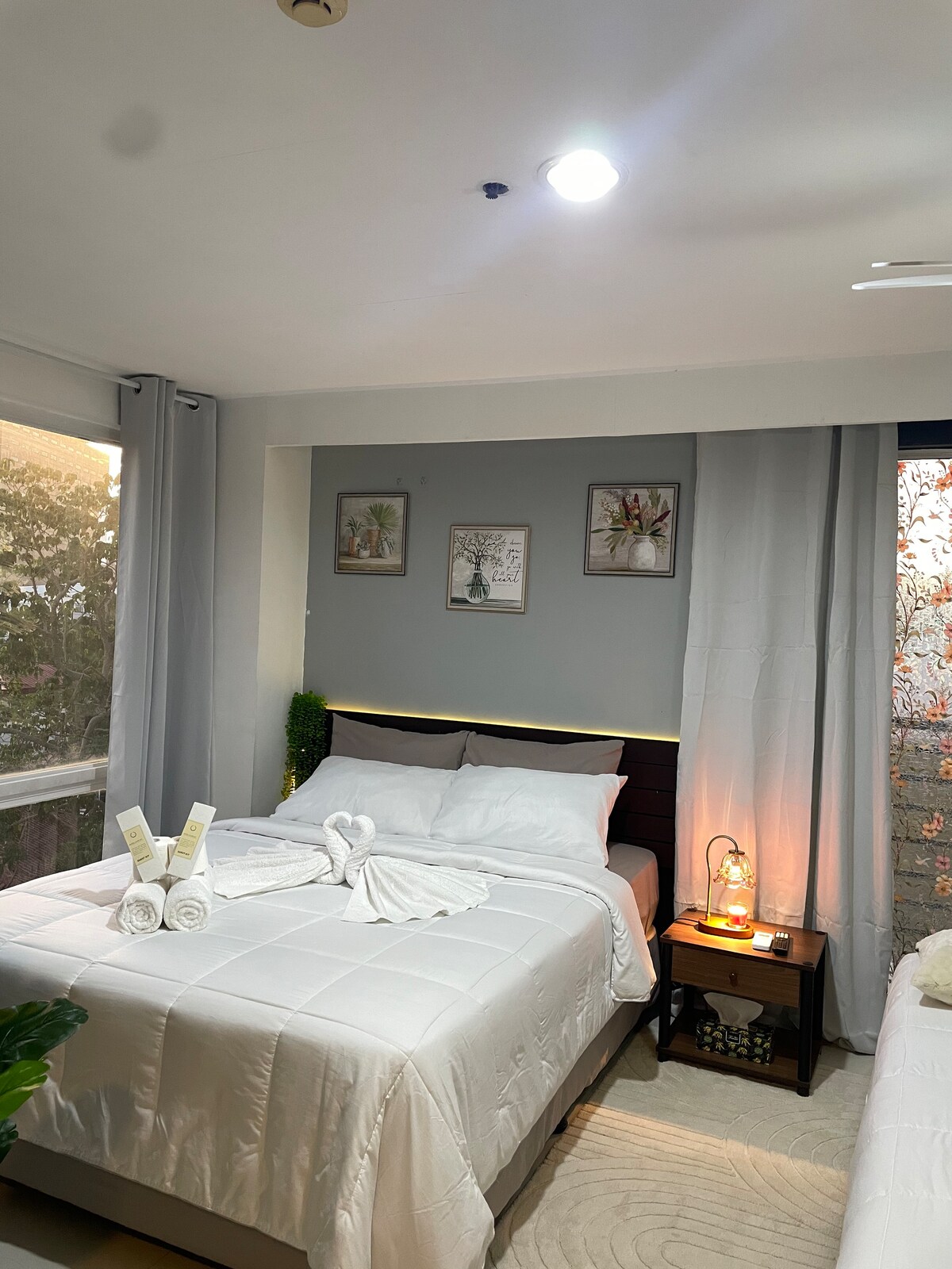 Ciesz się komfortem hotelu i domową atmosferą w ARC Towers Cebu Staycation.Przytulny apartament z podwójnym łóżkiem, rozkładaną sofą, Wi-Fi, Smart TV, klimatyzacją, lodówką i kuchnią umożliwiającą lekkie gotowanie.Dostęp do basenu, salonu Skylounge, tarasu na dachu, placu zabaw i parkingu.Strefa wolna od powodzi z generatorem.W pobliżeniu Cebu Doctors, Chong Hua, SM Seaside, Fuente Osmeña, 7-Eleven i PICK-UP Coffee. Idealne na krótkie pobyty i wypad do miasta!