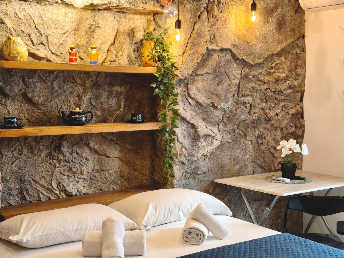 Dom położony jest w samym sercu zabytkowego centrum Cefalù, 200 metrów od morza i 200 metrów od Piazza Duomo. W pełni niezależny apartament z dużym wewnętrznym dziedzińcem i strefą relaksu z wanną z hydromasażem i wanną z hydromasażem. Wnętrze składa się z salonu, aneksu kuchennego, łazienki i sypialni na piętrze, a wszystko to jest umeblowane skrupulatnie i wyposażone we wszystkie udogodnienia. Posiada zarezerwowane miejsce parkingowe na parkingu Centro Storico Dafne di Cefalù.