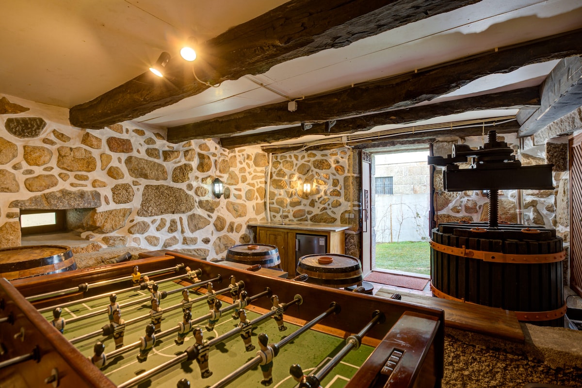 Trata-se de casa Moinho MN,têm cama de casal,cama individual e sofá cambalhota extra para filhos, permite o alojamento gratuito de 2 filhos até 12 anos, casa de banho com coluna de jacuzzi.Possui uma cozinha equipada e exclusiva Espaço rodeado por praia fluvial privativa, com quedas de agua e lagoas, ideal para passeios de barco.Grande e lindo bosque, local muito sossegado, no meio da natureza. Bom para casais, aventuras individuais,famílias(com crianças)piscina.Enotecaoferta prova vinhos quinta