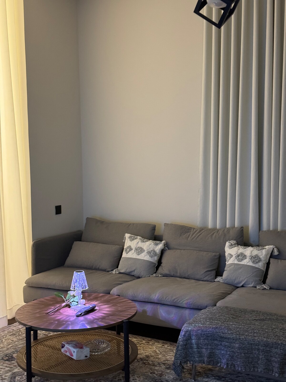 Witamy w naszym pięknym mieszkaniu z 1 sypialnią i salonem w Dżuddzie! Zrelaksuj się w tym nowo umeblowanym i położonym w centrum miejscu, które oferuje łatwy dostęp do głównych atrakcji w Dżuddzie w pobliżu: - Szpital Alhabib (7 min) - centrum handlowe Andalus (7 min) - centrum handlowe Alsalam (7 min) - Uniwersytet Króla Abdulaziza (5 min) - dworzec kolejowy Haramain (12 min) Niezależnie od tego, czy jesteś tu w interesach, czy dla przyjemności, nasz elegancki obiekt zapewni Ci niezapomniany pobyt.