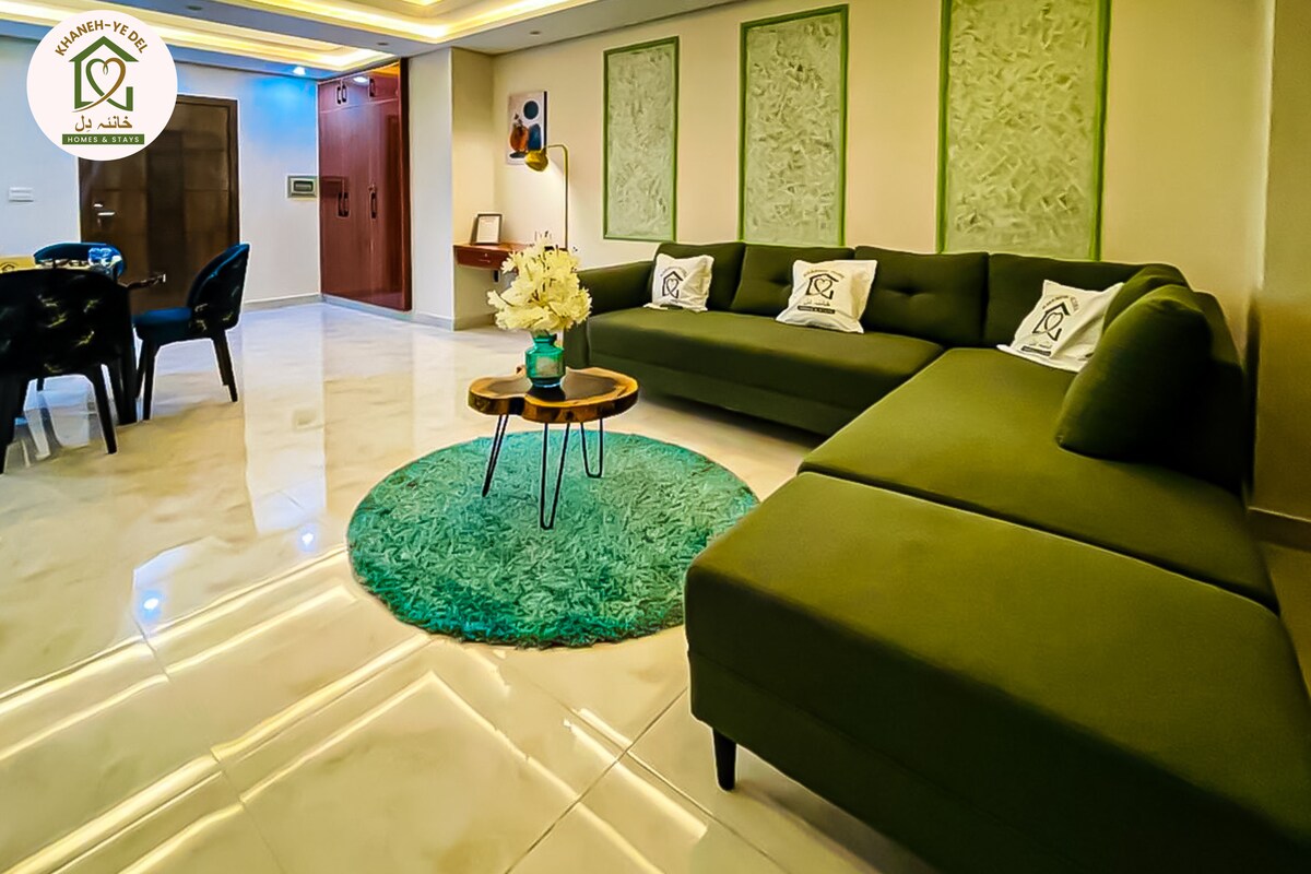 Witaj w @blueoakresidences Przestronne mieszkanie o powierzchni 1500 stóp kwadratowych w F-11/1 Islamabad z 2 sypialniami z łazienką, każda z prywatnym balkonem, toaletą, zasilaniem awaryjnym UPS, szybkim Wi-Fi, samodzielnym zameldowaniem i 58-calowym telewizorem Smart TV. Kuchnia, ciepła woda, bezpłatny parking, całodobowa winda w cenie. W przypadku grup liczących więcej niż 4 osoby zapewniamy 2 dodatkowe materace podłogowe dla maksymalnie 6 gości. Gondola dostępna na życzenie na 3+ noce (5000 PKR). Kilka kroków od Loafology, Nando's, Asian Wok, KFC, Al-Fatah. Park dla rodzin tuż obok.