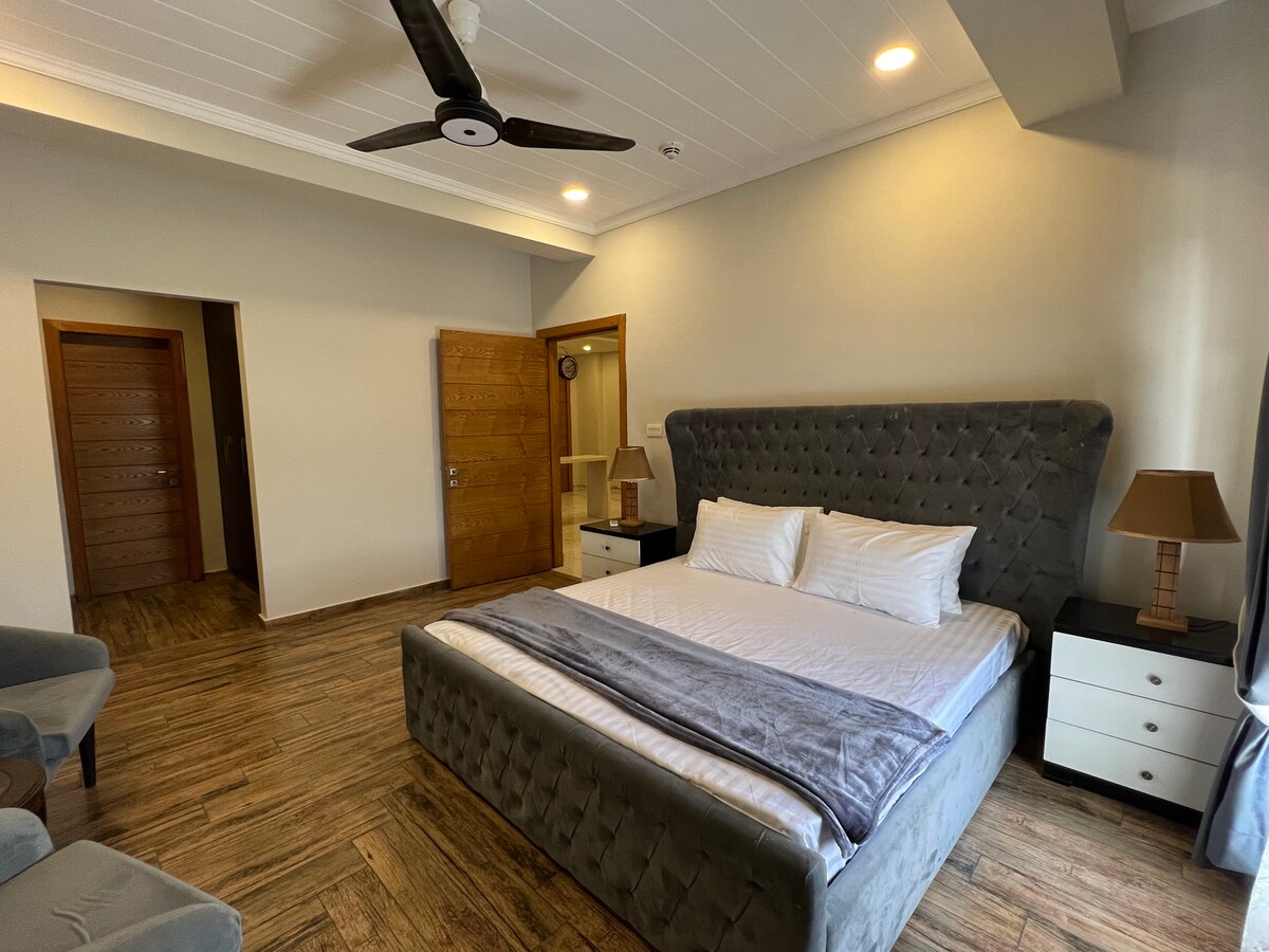 Jeśli szukasz luksusowego miejsca na pobyt w samym sercu Islamabadu najbliżej natury, to jest to miejsce dla Ciebie. Malownicza rezydencja na dachu w eleganckim, inteligentnym domu z obsługą Alexy, wyposażonym w sterowane głosem oświetlenie i komfort. Całkowicie prywatna przestrzeń z prywatnym wejściem, ogromnym tarasem, kuchnią, łazienką, salonem, 55-calowym telewizorem Smart TV, klimatyzacją z funkcją ogrzewania i chłodzenia, nieprzerwanym szybkim Wi-Fi, Netflixem i XBOX-360 z ponad 30 grami. Śniadanie, jacuzzi (w lecie) i suana są dostępne za dodatkową opłatą.