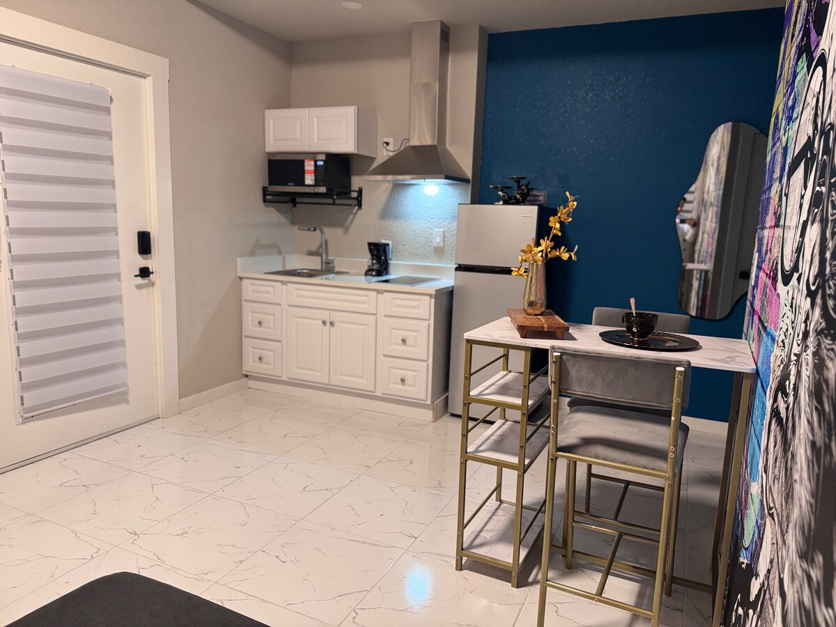 Zamieszkaj w tym pięknie urządzonym lofcie położonym w samym sercu Orlando. Wygodne łóżko typu queen z materacem z pianki memory i pełnowymiarowa sofa rozkładana mogą wygodnie pomieścić 4 osoby. Loft o otwartej przestrzeni ma dobrze wyposażoną nowoczesną kuchnię, która pozwala gościom gotować ulubione dania lub delektować się jedzeniem na wynos z jednej z najwyżej ocenianych restauracji w okolicy. Oddzielna jadalnia zapewnia dużo miejsca na relaks i poranną kawę lub oglądanie Netflixa na 55-calowym telewizorze na ścianie.