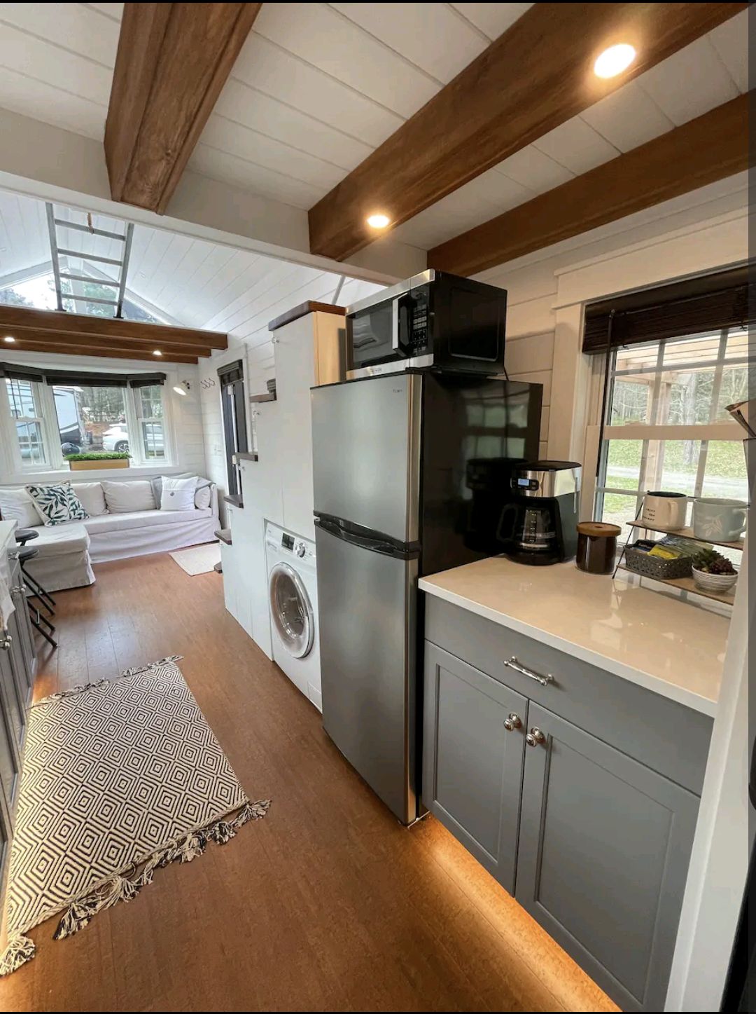 In the midst of the newly renovated Hartman Center Campground, is the Modern Tiny Home! Experience luxurious amenities throughout the Tiny home. Relax in the custom-designed Tiny home or relax in the outdoor seating area/Hot Tub, all while being surrounded by an atmosphere only The Hartman Center Campground has to offer! This is perfect for drinking your coffee in the living room looking out the Large window and enjoying nature.