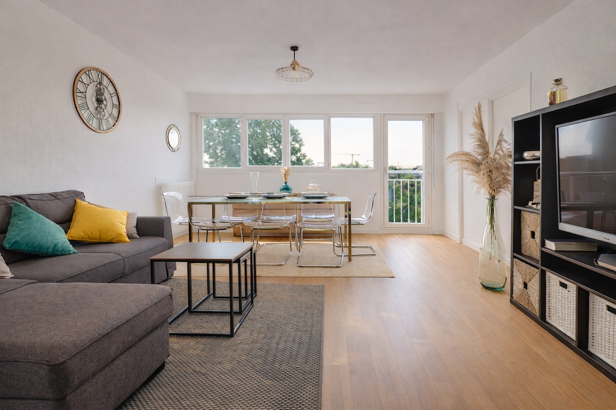 Zamieszkaj w naszym jasnym, przestronnym domu w modnej dzielnicy Mail Mitterrand, kilka kroków od centrum miasta. Idealny zarówno do pracy, jak i rekreacji, ten w pełni wyposażony miejski ośrodek wypoczynkowy oferuje szybkie Wi-Fi, Netflix, ekspres Nespresso, panoramiczny monitor, głośnik Devialet i wiele więcej dla Twojej wygody. W pobliżu znajdziesz uliczną strefę treningową, plac zabaw dla dzieci, wypożyczalnię kajaków do wypraw na rzekę oraz malowniczą ścieżkę do biegania i jazdy na rowerze wzdłuż brzegu. Obiecujemy niezapomniany pobyt!
