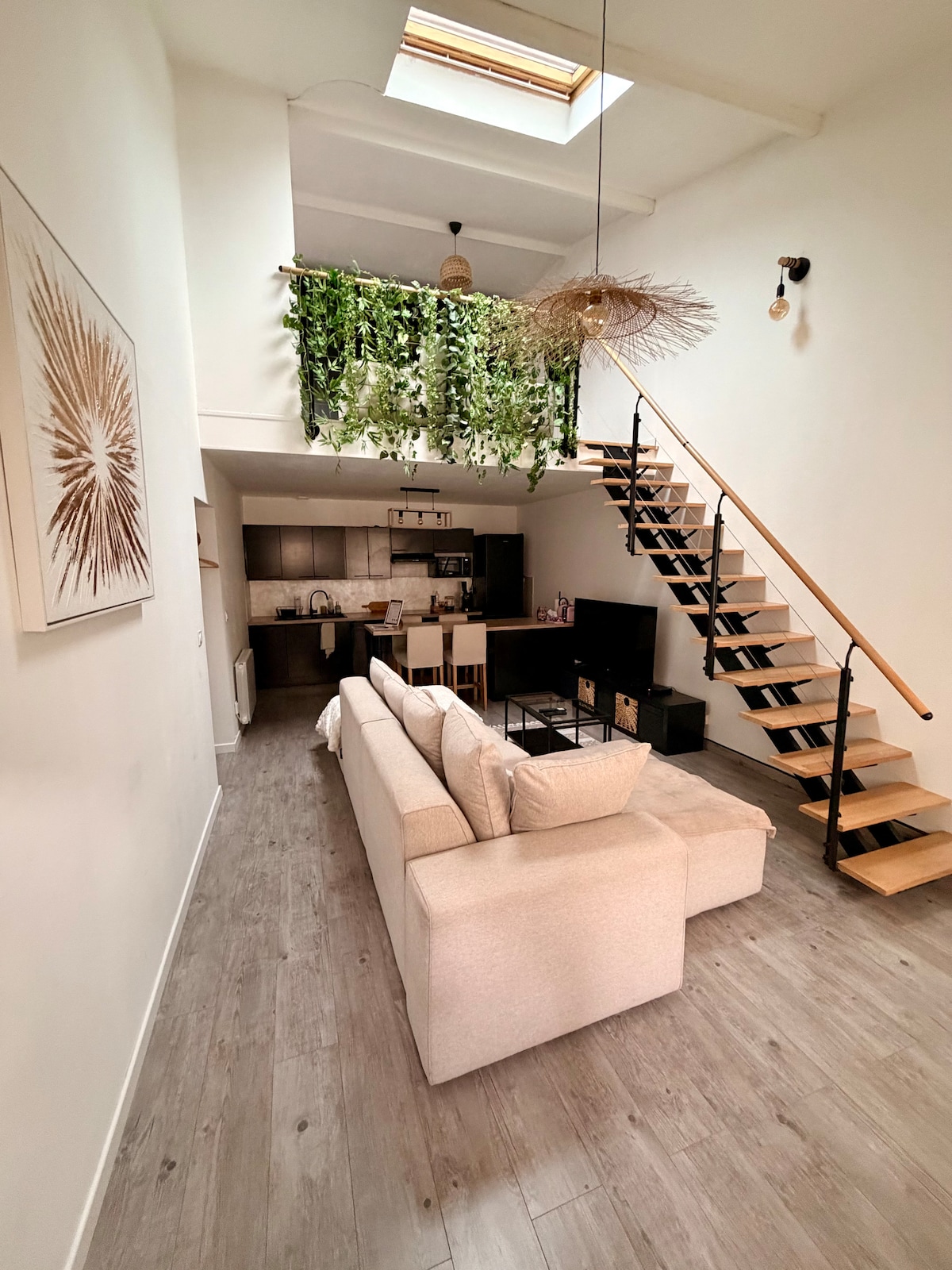 Przyjemny apartament w stylu loftu, odnowiony, położony na pierwszym piętrze (bez windy) (dodatkowo drugie schody w mieszkaniu), duży salon z otwartą kuchnią, dwie sypialnie, każda z własną łazienką z prysznicem, wszystkie klimatyzowane, w pobliżu Katedry w Reims. Apartament wyposażony w: ekspres do kawy Nespresso, czajnik, toster, zmywarkę, pralkę/suszarkę, deskę do prasowania, żelazko, suszarkę do włosów, pościel (prześcieradła i ręczniki kąpielowe)