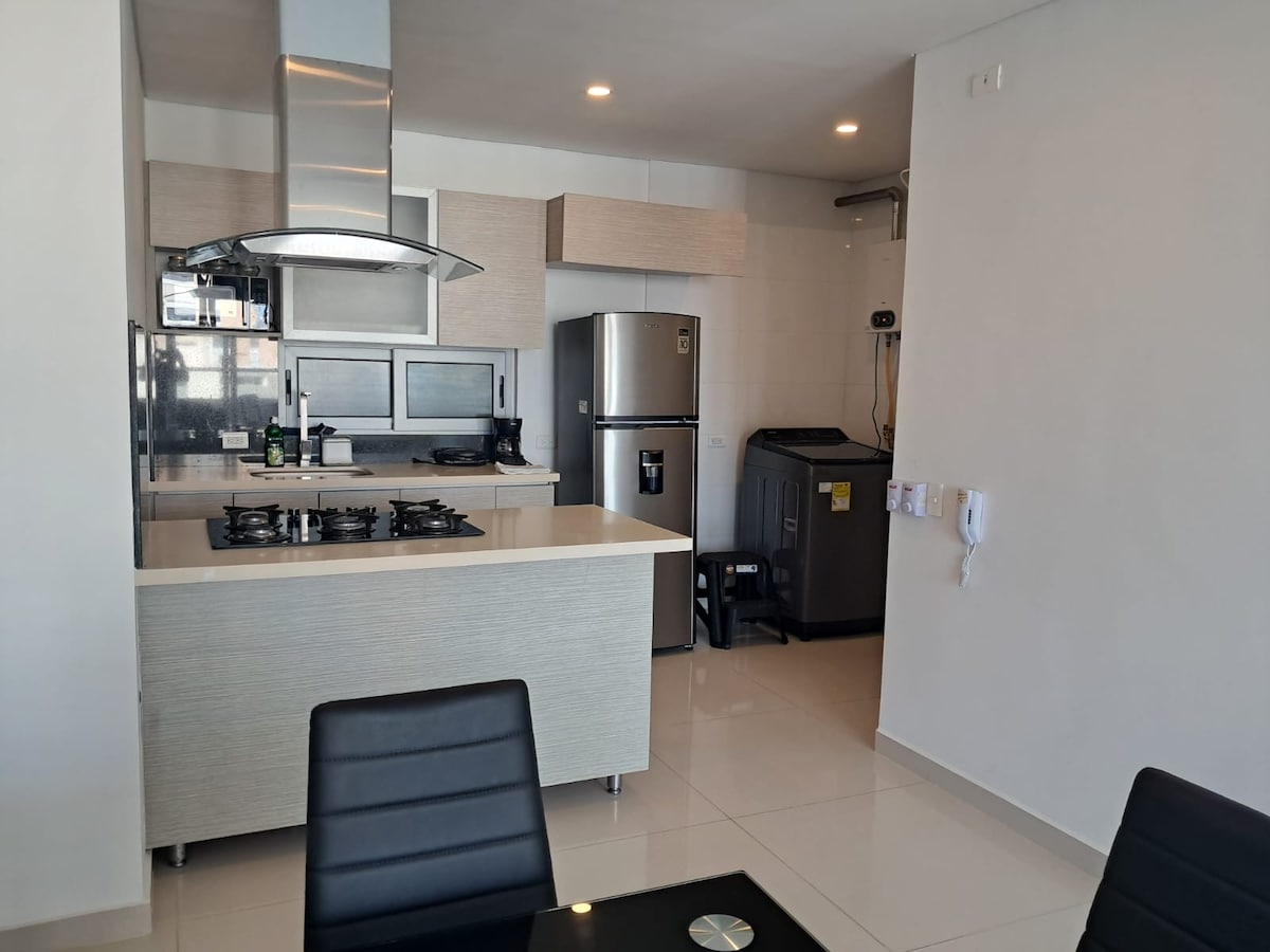 W pełni wyposażony apartament, położony w najlepszych miejscach w Barranquilla, bardzo blisko ŻYWEGO centrum handlowego, świetne przestrzenie socjalne, przestronne, 20 piętra, zupełnie nowy budynek, klimatyzacja we wszystkich pokojach, mamy 4 wentylatory stojące dla Twojej wygody, a przebywanie na 20 piętrze zapewnia dużo wentylacji i naturalnego powietrza z Rio. To wspaniałe ❤️