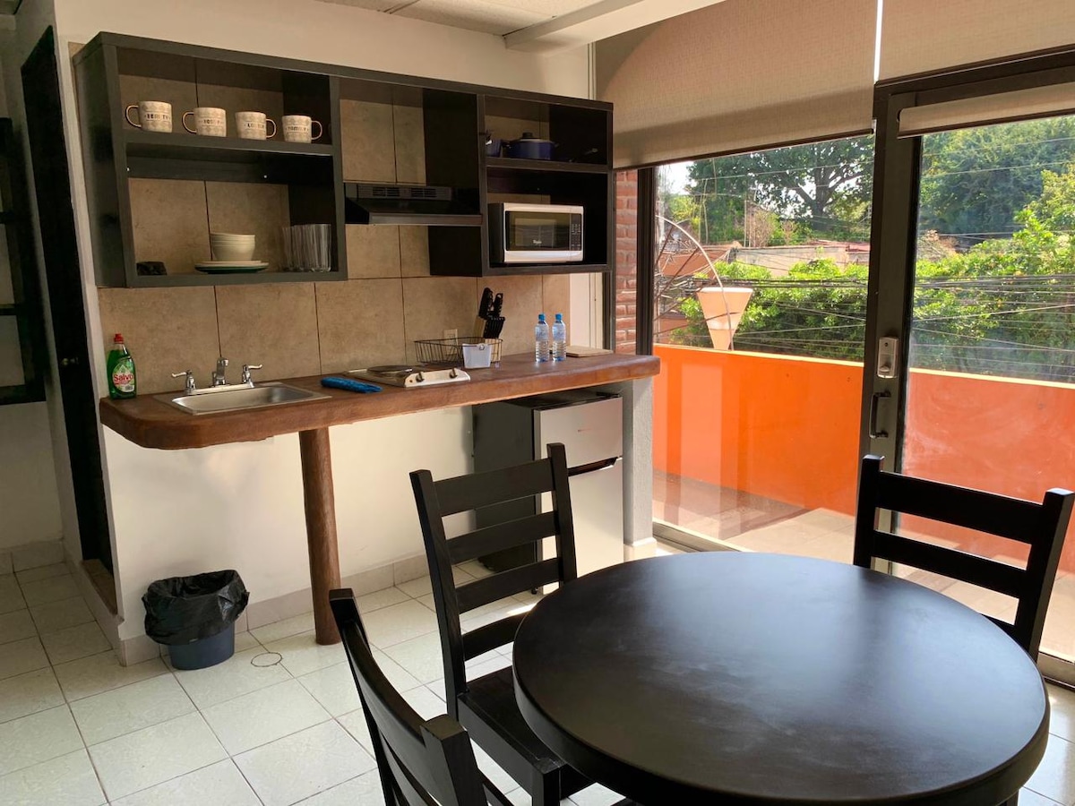 Disfruta de la sencillez de este loft tranquilo e iluminado. Se encuentra muy cerca del IMSS de plan de Ayala, de la glorieta de la luna (punto de encuentro del transporte público) y a 8 min caminando de la terminal Del Dragón de Pullman. El centro de la ciudad se encuentra a 15 min en auto. Cuenta con una cama matrimonial y un sofá cama. Tiene árboles alrededor, se encuentra en un segundo piso (se ingresa por una escalera de caracol), tiene entrada independiente y estacionamiento para un auto.