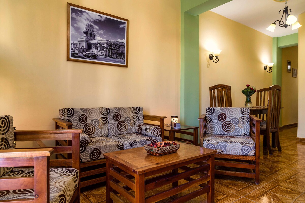 Piękny i niedawno odnowiony apartament, z którego można łatwo dostać się pieszo do wielu historycznych i kulturalnych zabytków Starej Hawany. Dwa prywatne pokoje z łazienkami dla 4 lub 5 osób - jeden z nich, pokój dwuosobowy z prywatnym balkonem wychodzącym na ulicę. W każdym pokoju znajduje się klimatyzacja, minibar, zamek w drzwiach, suszarka do włosów, wentylator elektryczny i sejf. Taxi pick up at the airport, tour guides, & colectivo are offered. Twoja gospodyni z przyjemnością przywita Cię w Hawanie!